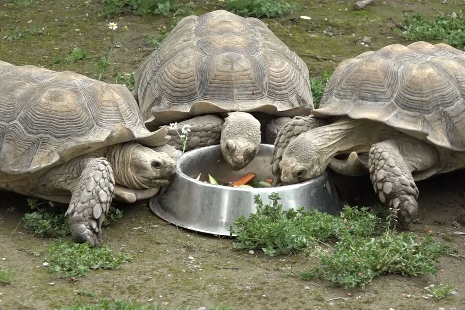 Kaplumbağalar için özel olarak hazırlanan havuç, salatalık, marul ve benzeri meyve ve sebzelerden oluşan tabak kısa sürede tükendi. Bursa’da yaklaşık 206 bin metrekarelik alanda 135 türden bini aşkın hayvanın bulunduğu ve yılda 1 milyondan fazla ziyaretçiyi ağırlayan hayvanat bahçesinde 'Dünya Kaplumbağalar Günü' kutlandı. Hayvan başına düşen doğal alanları ile Avrupa’daki en büyük hayvanat bahçelerinden biri olan Avrupa Hayvanat Bahçeleri ve Akvaryumları Birliği’nin tam üyesi olan hayvanat bahçesindeki kutlama, tahmin edildiği gibi havai fişek, meşale, pasta ve şarkılarla olmadı. Kendi alanlarında kendi günlerinden habersiz dolaşan kaplumbağalar, bakıcıları tarafından konan tabaktaki sebze ve meyveleri tüketmek için birbiriyle yarıştı. Kısa sürede tabağa konulanları bitiren kaplumbağalar için alışılagelmişin dışında bir kutlama yaptıklarını belirten bakıcıları Arif Ardıç, "Bahçemizde, Afrika ve leopar kaplumbağası mevcut. 8 adet kaplumbağa normalde 1 öğün besleniyor. Günün geri kalanı ise alanlarındaki yeşillikleri tüketiyorlar. Bugün onlar için 3 öğün hazırladık. Biraz değişiklik olsun, mutlu olsunlar istedik" dedi. Hayvan türlerinin yanında 11 gölet, 2 bin ağaç, 50 çalı bitkisi ve 150 bin yer bitkisiyle vatandaşların nefes alacağı önemli bir alan olan park, çocuklar kadar aileler tarafından da büyük ilgi görüyor. 2000 yılından beri her 23 Mayıs'ın Dünya Kaplumbağa Günü olarak kutlandığını belirten yetkililer ise, hedeflerinin insanların hem evcil kaplumbağalar hem de tükenme tehlikesi altında olan deniz kaplumbağaları hakkındaki farkındalığını sağlamak olduğunu söyledi.