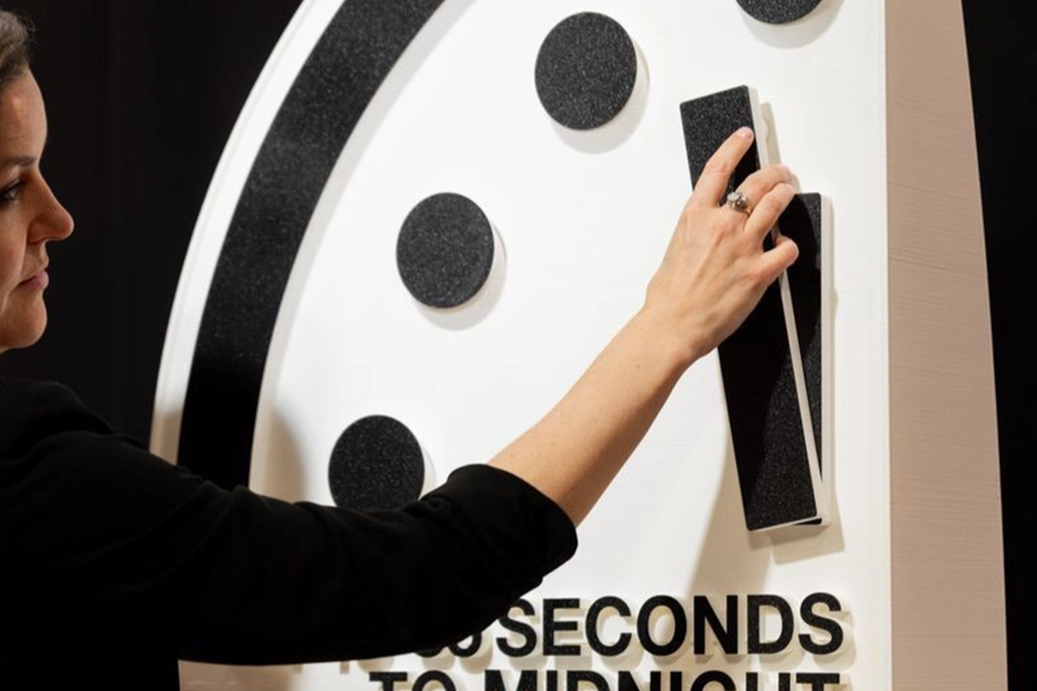 ABD’deki Chicago Üniversitesi’nde "Bulletin of the Atomic Scientists" dergisinin yönetim kadrosu tarafından 1947 yılı itibarıyla nükleer felaket için geri sayımı başlatılan sembolik saati, gece yarısına daha da yaklaştırıldı. Saat, gün bitimine 85 saniye kala olarak güncellenerek, dünyanın sonunu temsil eden gece yarısına bugüne kadarki en yakın noktaya ayarlanmış oldu. Bilim insanları, saatin daha ileri alınmasına gerekçe olarak, nükleer güçler Rusya, Çin ve ABD’nin giderek saldırganlaşan tutumları, Ukrayna ve Orta Doğu’daki çatışmalar ve yapay zekaya ilişkin endişeleri gerekçe gösterdi.