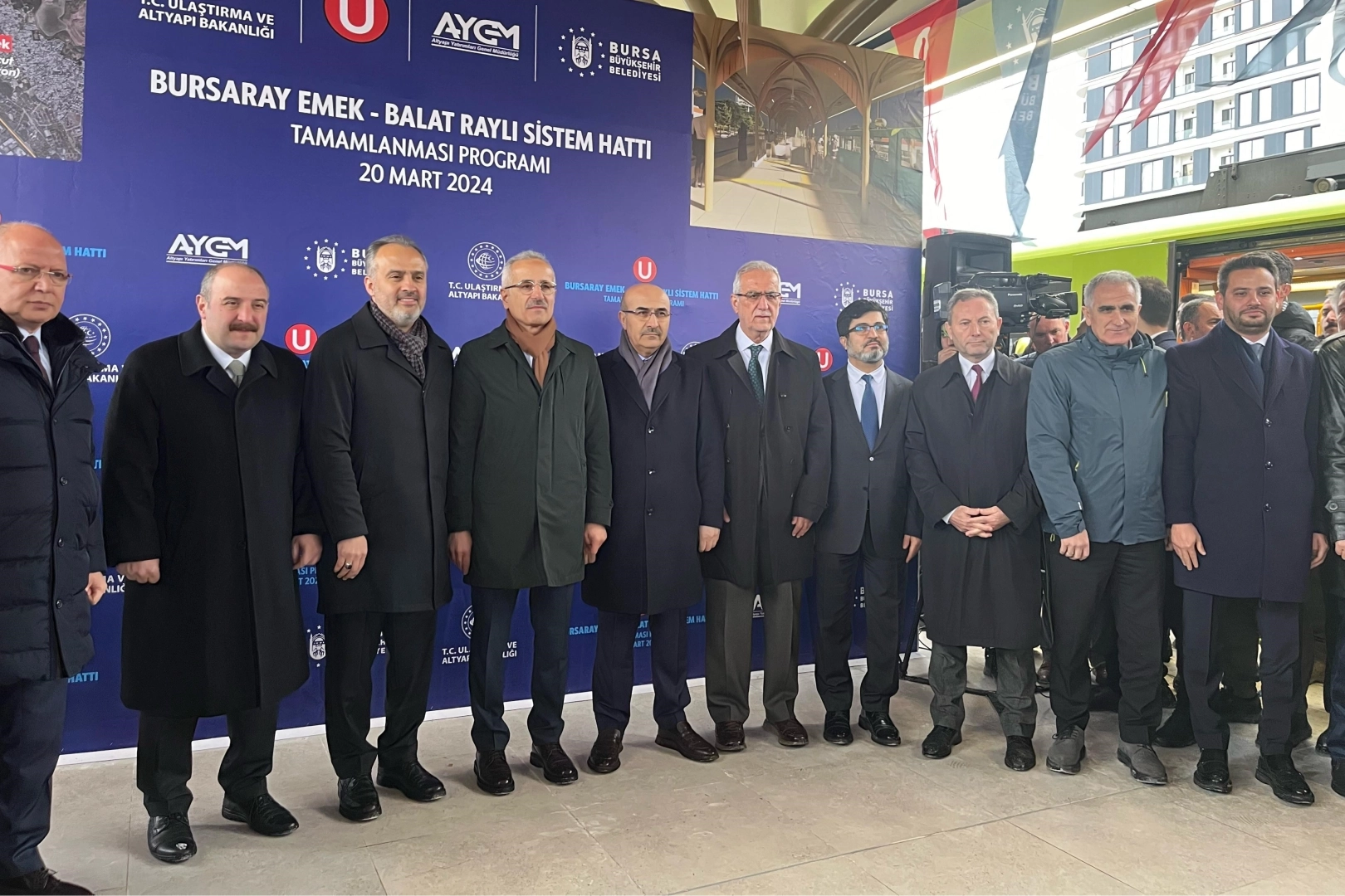 Ulaştırma ve Altyapı Bakanı Abdulkadir Uraloğlu, Bursaray Emek-Balat Raylı Sistem hattının tamamlanma törenine katıldı. Uraloğlu, yaptığı konuşmada, "Bursa'nın kent içi Balat-Emek raylı sistemi için bir aradayız. 2002 yılından bu yana Cumhurbaşkanımızın liderliğinde şehirlerimizi hızlı trenlerle bağlarken, şehir içi raylı sistemleri birbiri ardına hayata geçiriyoruz. Kent içi raylı sistem fırtınasını estiriyoruz. Ülke genelinde kent içi raylı sistem uzunluğumuz 433 kilometre oldu. Sadece İstanbul’da bu sene 34 kilometrelik raylı sistem hattını hayata geçirdik. Bursa'da, Kocaeli'de raylı sistem çalışmalarımızı yürütüyoruz. Toplam 47 kilometrelik hattın çalışmasını sürdürüyoruz” dedi.