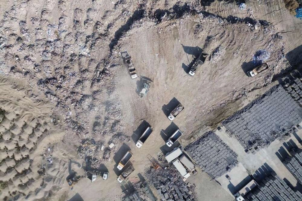 Hatay’da meydana gelen şiddetli depremlerin ardından şehirde bulunan binaların büyük bir kısmı yıkıldı. İlk meydana gelen depremden 19 gün geçmesinin ardından yıkılan binaların bazılarında hala arama kurtarma çalışmaları devam ederken, bazı binalarda çalışmalar tamamlandı. Kurtarma çalışması biten binalara giren kepçe ve kamyonlar, süratla enkaz kaldırma işlemlerine devam ediyor. Hafriyat kamyonları yükledikleri enkazı şehre yakın bir noktaya taşımak için gün içerisinde defalarca sefer düzenliyor. Kamyonların enkazı boşalttıkları alana giderken oluşturduğu metrelerce kuyruk, drone ile havadan görüntülendi.
