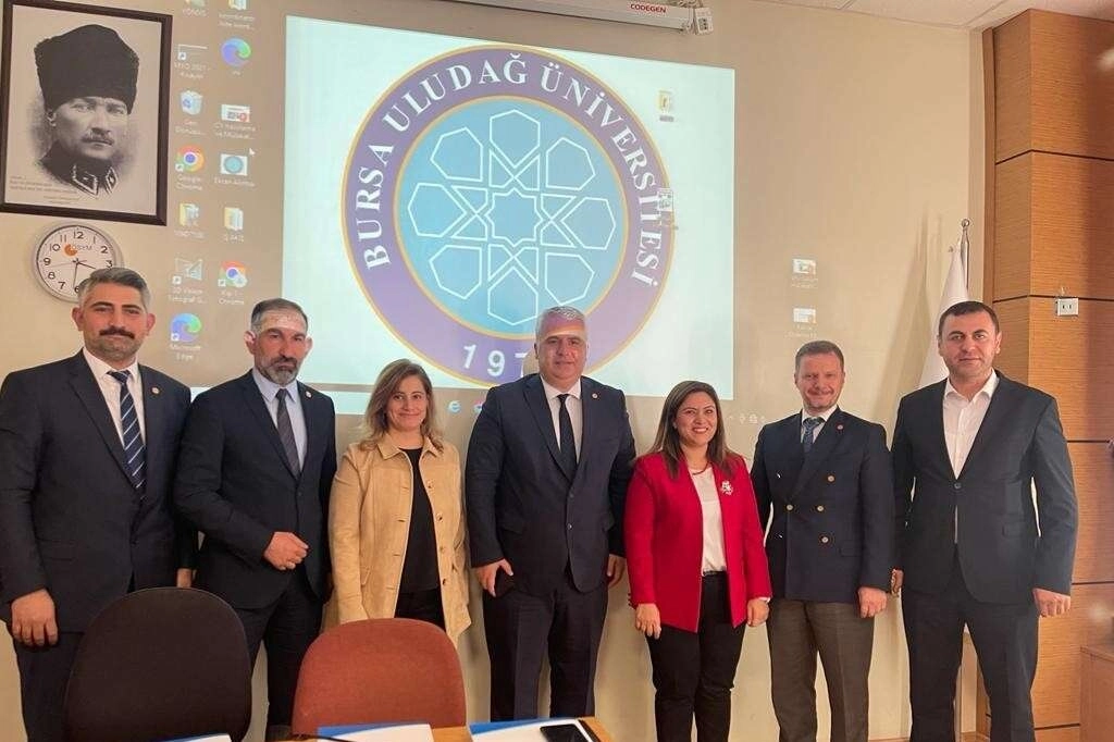 BTSO 54. Komite Başkanı Özkan Aydemir, Komite Meclis Üyeleri Göksel Birsen ve İsmail Duyar ile Komite Başkan Yardımcısı Serkan Üçdal ve Komite Üyesi Çağatay Gümüşyay, Bursa Uludağ Üniversitesi Emlak Yönetimi bölümünde eğitim gören birinci ve ikinci sınıf öğrencileriyle bir araya geldi.