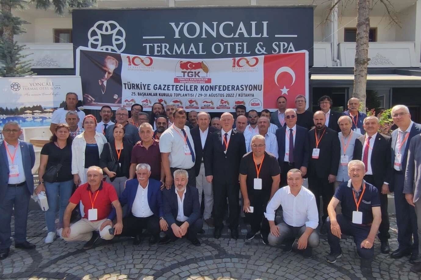 Türkiye Gazeteciler Konfederasyonu’nun 25. Başkanlar Kurulu Toplantısı, Kütahya Gazeteciler Cemiyeti’nin ev sahipliğinde yapıldı. 9 gazeteciler federasyonu ile bu federasyonlara bağlı 74 gazeteciler cemiyeti başkanı ve basın meslek kuruluşu temsilcisinin katıldığı toplantıdan sonra açıklanan TGK 25. Başkanlar Kurulu Sonuç Bildirgesi’ni okuyan Türkiye Gazeteciler Konfederasyonu Genel Başkanı Nuri Kolaylı, "Türkiye Cumhuriyeti’nin kurucusu Başkomutan Mustafa Kemal Atatürk önderliğindeki kahraman ordumuz, tam 100 yıl önce, işgalci güçlere karşı muhteşem bir zaferle sonuçlanan Başkomutanlık Meydan Muharebesi’ni kazanmış, milletimizin bağımsız ve hür yaşama iradesini tüm dünyaya haykırmıştır. Türkiye Gazeteciler Konfederasyonu olarak demokratik, laik ve sosyal hukuk devleti anlayışı içinde ülkemizin birliğine, bütünlüğüne ve bağımsızlığına sahip çıkma kararlılığımız hiçbir koşulda değişmeyecektir. Kahraman atalarımızdan aldığımız bu kutsal toprakları, gerektiğinde canımız pahasına korumak, temsilcisi olduğumuz 20 bin medya çalışanının öncelikli vatan borcudur" dedi.