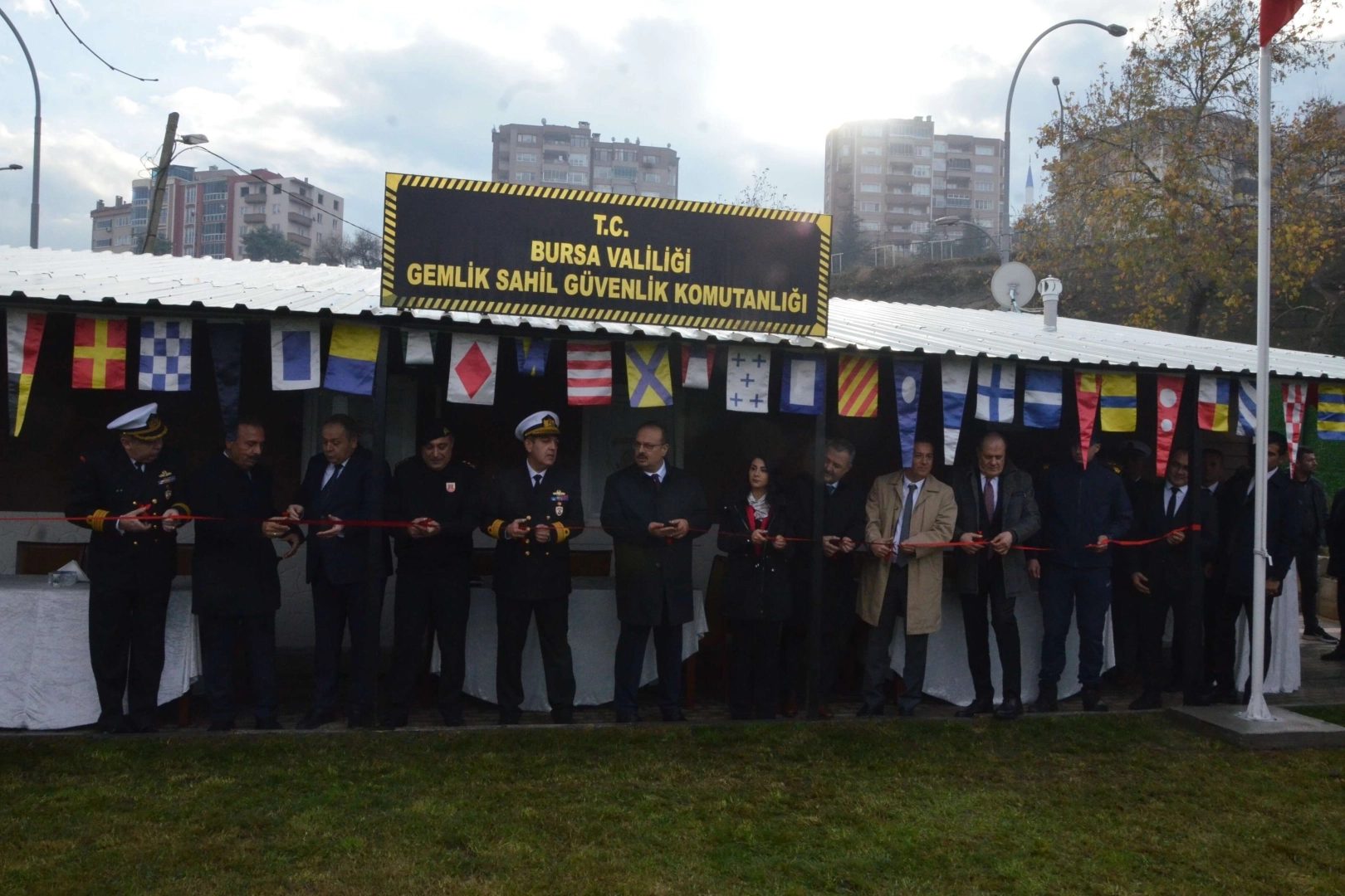 Bursa Valisi Yakup Canbolat, Sahil Güvenlik Bölge komutanı Tuğamiral Tayfun Paşaoğlu, Jandarma Komutanı Tümgenerel Tekin Aktemur, İl emniyet müdürü Tacettin Arslan ile Gemlik Kaymakamı Hasan Göç, Cumhuriyet Başsavcısı Hilal Bozdağ ve Ticaret ve Sanayi odası başkanı Hasan Hamaloğlu ile diğer davetliler katıldı. İlçe müftü vekili Mehmet Durmuş'un duasının ardından açılış kurdelesi kesildi. Açılışın ardından katılımcılara bina gezdirilerek, yapılacak olan çalışmalarla alakalı bilgiler verildi.