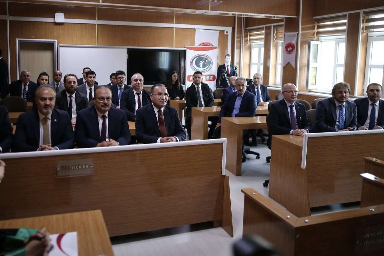 Bursa Hamitler TOKİ Mesleki ve Teknik Anadolu Lisesi Adalet Bölümü öğrencileri tarafından okul içerişinde bulunan mahkeme salonunda bir mizansen gerçekleştirildi. Okula konuk olan Adalet Bakanı Bekir Bozdağ gerçeği aratmayan duruşmayı dikkatle izledi. Duruşma bitiminde öğrencilerle sohbet eden Bozdağ, "Sizleri öncelikle tebrik ediyorum. Buradaki mizansen gerçekten çok güzeldi. Bir ara gerçekten etkilendim. İnşallah sizler gelecekte burayı bitirdikten sonra Hukuk Fakültesine gidersiniz. Hakim ve savcı olarak görürüz. Bu kürsülerde mizansen değil gerçek hakim ve savcı olarak ülkemize hizmet edeceksiniz. Ben şimdiden sizleri hem mesleğe davet ediyorum, hem de hukukçu bir büyüğünüz olarak sizlere tavsiye ediyorum" dedi. Okulun diğer bölümlerini de gezen Bozdağ, okul önünde öğrencilerle hatıra fotoğrafı çektirdi. Öğrenciler tarafından Bozdağ’a çiçek takdim edildi.