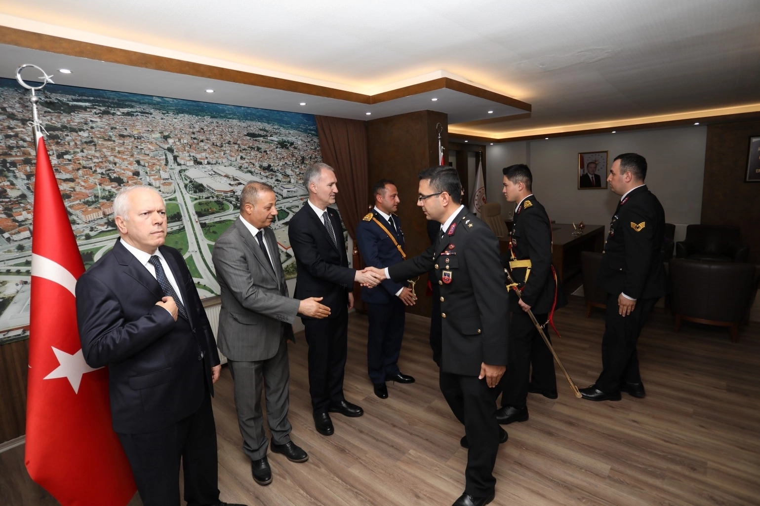 Son olarak kaymakamlık makamında Kaymam Eren Arslan, Garnizon Komutanı Binbaşı Abdullah Gençay ve Belediye Başkanı Alper Taban'ın tebrikleri kabul etti.