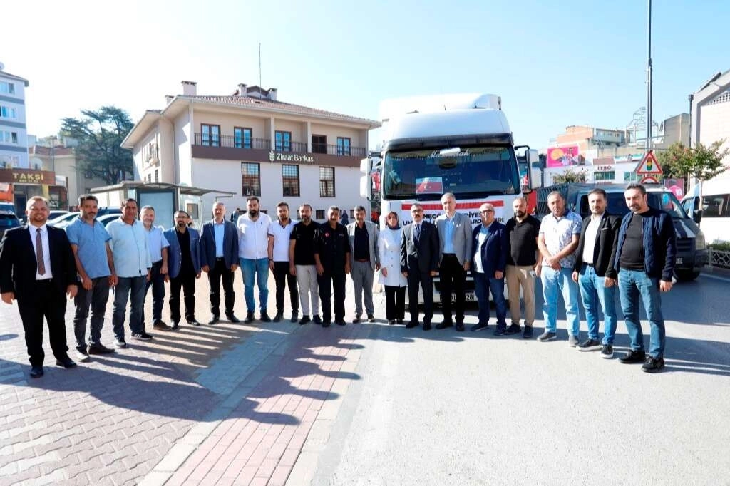 Muson yağmurları dolayısıyla sel afeti yaşanan dost ve kardeş ülke Pakistan, zor günlerden geçiyor. Sel dolayısıyla binin üzerinde insanın hayatını kaybettiği, ülkenin nerdeyse 3’te 2’sinin sularla kaplandığı, 1,1 milyon evin hasar gördüğü ve 800 bine yakın hayvanın telef olduğu Pakistan’a ülkemizden insani yardımlar gönderilmeye devam ediyor. Hava köprüsü kurulan bölgeye gönderilecek yardımlar için AFAD koordinasyonunda başlatılan insani yardım kampanyasına İnegöl Belediyesi de Umuteli Derneği iş birliğinde destek verdi. Kısa sürede 46 hayırseverin katkısıyla; un, pirinç, mercimek, nohut, Ayçiçek yağı, şeker ve bisküvi bulunan 1000 adet yardım kolisi hazırlandı. Kolileri taşıyan tır bu sabah İnegöl’den hareket ederek Pakistan’a ulaştırılmak üzere yola çıktı. Tırı Kaymakam Eren Arslan, Belediye Başkanı Alper Taban, AFAD Bursa İl Müdürü Yalçın Mumcu ile Umuteli Derneği yöneticileri uğurladı.