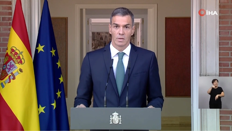 İspanya Başbakanı Pedro Sanchez, İsrail’in Gazze Şeridi’ndeki eylemlerine ilişkin açıklama yaptı. Kamera karşısına geçerek İsrail’e sert eleştirilerde bulunan Sanchez, İsrail Başbakanı Binyamin Netanyahu hükümetini "hastaneleri bombalayarak savunmasız bir halkı yok etmekle" ve "masum çocukları açlıktan öldürmekle" suçladı. İsrail Başbakanı Netanyahu’nun üzerindeki baskıyı artırmaya yönelik bir dizi tedbiri kamuoyuna duyuran Sanchez, "Ülkenizi ve toplumunuzu korumak bir şeydir, ama hastaneleri bombalamak ve masum çocukları aç bırakıp öldürmek tamamen başka bir şeydir. Başbakan Netanyahu’nun Ekim 2023’teki korkunç saldırılara yanıt olarak gerçekleştirdiği askeri operasyon, sonunda yeni bir yasa dışı işgal dalgasına ve Filistinli sivil halka yönelik savunulamaz bir saldırıya dönüştü. Bu saldırı, BM özel raportörü ve çoğu uzman tarafından zaten soykırım olarak tanımlanıyor" dedi."Bu, savunmasız bir halkı yok etmek demektir"
