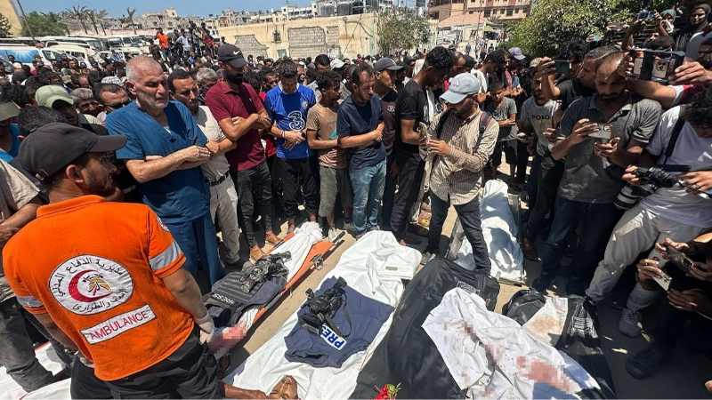 İsrail ordusunun Gazze Şeridi'nin güneyindeki Han Yunus kentinde bulunan Nasser Hastanesi'ne art arda düzenlediği iki hava saldırısında can kaybı arttı. Saldırıda hayatını kaybedenlerin sayısı 5'i gazeteci olmak üzere 20’ye yükseldi. Hayatını kaybeden gazeteciler arasında Hossam el-Mesri, Muhammed Selame, Meryem Ebu Dakka, Ahmed Ebu Aziz ve Muaz Ebu Taha’nın bulunduğu aktarıldı.