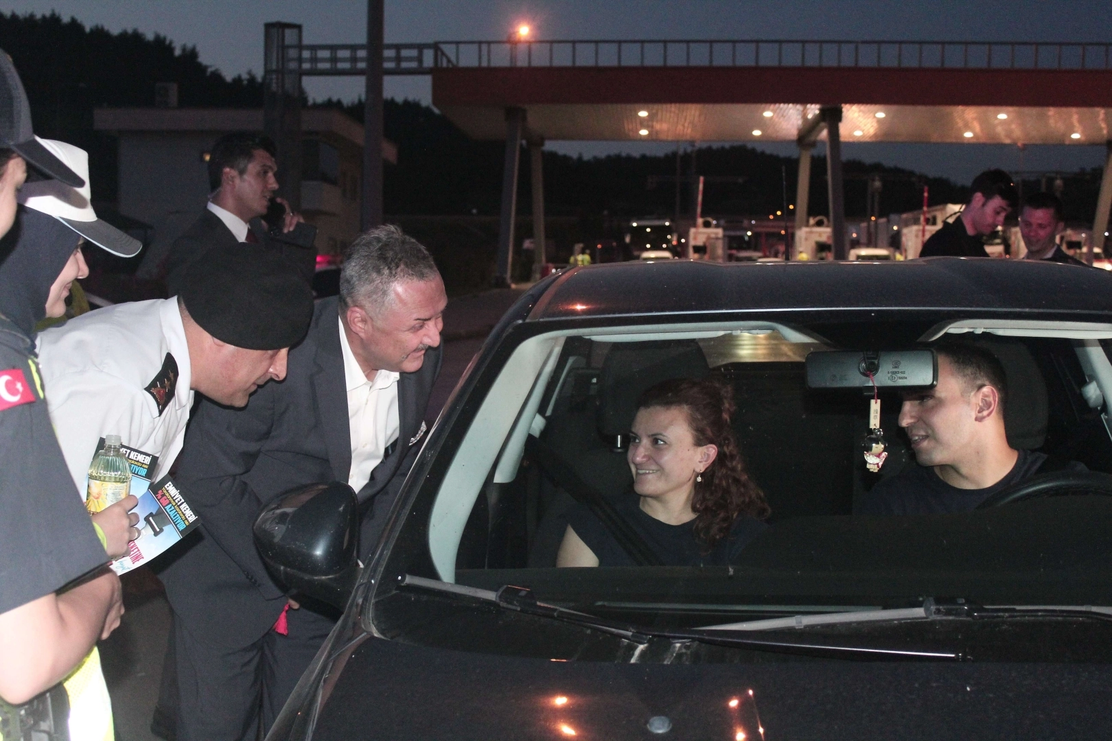 Araç içinde dikkatli olmaları ve emniyet kemeri takmaları konusunda uyarıda bulunan polis ve jandarma ekipleri, aynı zamanda yolculara hediye ve broşür dağıttı. Bayram tatili boyunca 815 polis ile 186 jandarma personeli sahada görev yapacak. 95 uygulama noktası kurulurken 1 helikopter ve dron ile havadan güvenlik sağlanacak. Bursa İl Jandarma Komutanı Tekin Aktemur ve Bursa İl Emniyet Müdürü Tacettin Aslan, Bursa otoyolu Kuzey gişelerinde 9 günlük bayram tatili öncesinde yolculara sürpriz yaptı. Jandarma ve polis ekiplerinin ortak gerçekleştirdiği "Bu Yolda Sana Çok Güveniyoruz, Bayramınız Kemerli Olsun" sloganı ile trafik kazalarının önüne geçmek, can kaybı ve yaralanmaları en aza indirmek için gerekli tedbirleri aldı. Yetkililer, tatil süresince yollarda olan sürücülerin aşırı hız yapmamaları, sürüş esnasında cep telefonu kullanmamaları, emniyet kemeri kullanımına özen göstermeleri konusunda uyarılarda bulunuldu.