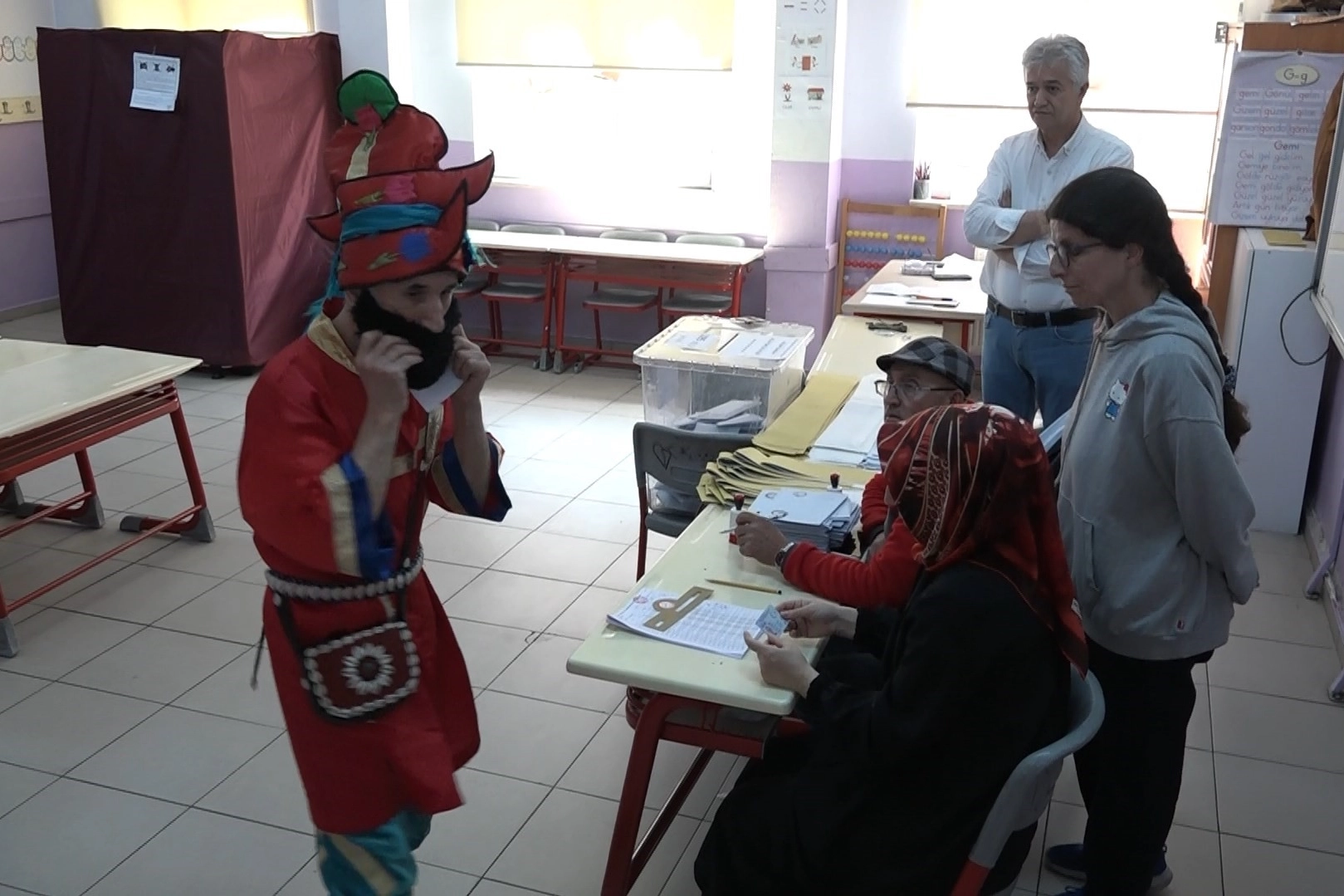 Bursa’da 31 Mart Mahalli İdareler Genel Seçimlerinde farklı kostümlerle oy kullanmaya gelenler dikkat çekmeyi başardı. Kimi astronot, kimi kral tacı, kimi atıyla, kimi ise palabıyığıyla oy kullanmaya gelirken, Bursalı tiyatrocu Bahtiyar Keskin ise, 'Karagöz' kostümünü giyerek oy kullanmak istedi. Karagözün saflığı temsil ettiğini, kendisinin Hacivat'tan akıl alarak oy kullanmaya geldiğini söylese de, içeri girerken, kimliğinin olmadığı fark etmesi üzerine neye uğradığını şaşırdı. İlk önce telefon ederek kimliğinin gelmesini bekleyen Keskin, kimse getirmeyince kendisini gidip aldı. Kısa süre sonra okula tekrar gelen Keskin, bu sefer ise okuldaki seçim görevlilerinin engellemesiyle karşı karşıya kaldı. Daha sonra oy kullanmaya geçen keskin, kostümlerini çıkarıp kendisi olduğunu kanıtladıktan sonra oyunu kullandı.