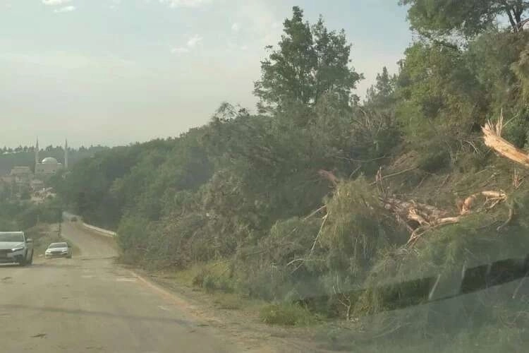Kesilen çam ağaçları nedeniyle bazı bölgelerde yol tek şerite düşerken, bu yolu kullanan sürücülerin dikkatli olmaları istendi.