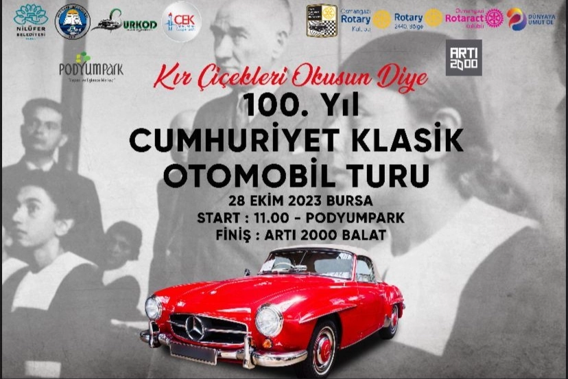 Bursa’nın birbirinden güzel, rengarenk klasik otomobillerinin yaşatacağı görsel şölen Podyum Park’tan başlayarak, Mudanya Mütareke Meydanı’ndaki mola sonrası Balat’taki Artı2000 etkinlik alanında sonlanacak. Cumhuriyet’in 100. yılına adanan etkinlikten elde edilen gelir ile Çağdaş Eğitim Kooperatifi Ortaöğretim Kız Yurdu’ndaki bursiyer “Kır Çiçekleri”nin eğitim materyali ve ekipmanı ihtiyaçları karşılanacak.