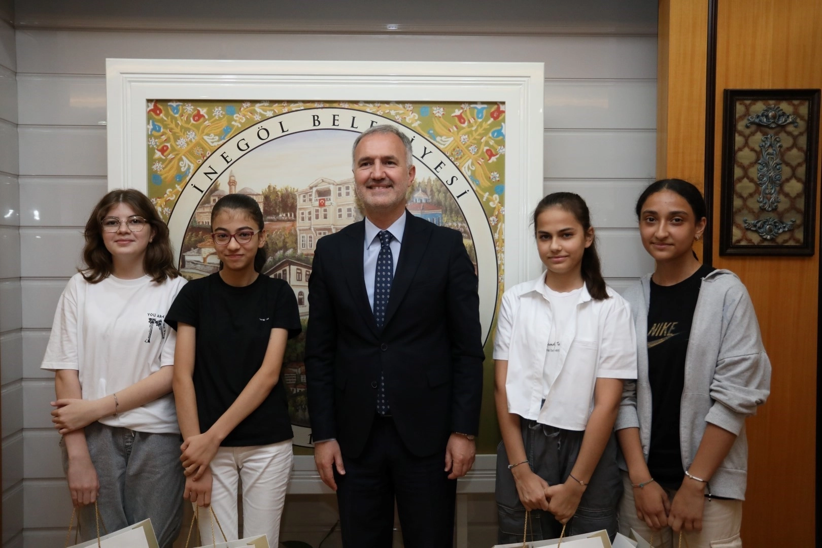 Başkan Taban makamında misafir etti Belediye Başkanı Alper Taban, LGS sınavında derece elde eden devlet okullarında eğitimleri süren bu 4 öğrenciyi bugün makamında misafir etti. Buluşmada LGS Türkiye 1’incisi Elif Akkoyun, LGS İnegöl 2’ncileri Zeynep Balantekin Esma Mert ve Nazlı Asmin Alparslan ile birlikte öğrencilerin anne ve babaları, İstaş Kentaş Okul Müdürü Semih Evren, Gazipaşa Okul Müdürü Özlem Akyol ve öğretmenleri; Suzan Yetiş, Ogün Yıldız ile Seher Özkan da hazır bulundu.