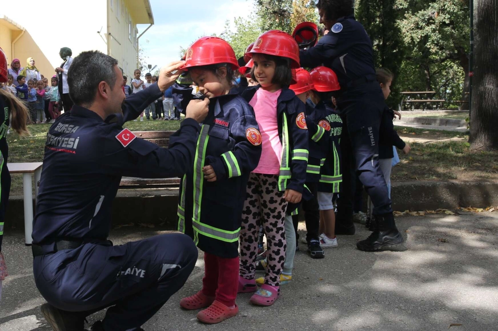 Minik itfaiyeciler Bu yıl İtfaiye Haftası etkinliklerine, Büyükşehir Belediyesi’nin Ana Kucağı Eğitim Merkezlerinde eğitim gören minikler de dahil edildi. İtfaiye ekipleri tarafından Karacabey, Gemlik, Hamitler, İnegöl, Yenişehir ve Gürsu Ana Kucaklarındaki miniklere hem itfaiyenin çalışma alanları hem de yangından korunma yolları hakkında bilgiler verdi. İtfaiye kıyafetleri giyip itfaiye araçlarına binen çocuklar, minik itfaiyeciler olarak hatıra fotoğrafları da çektirdi.