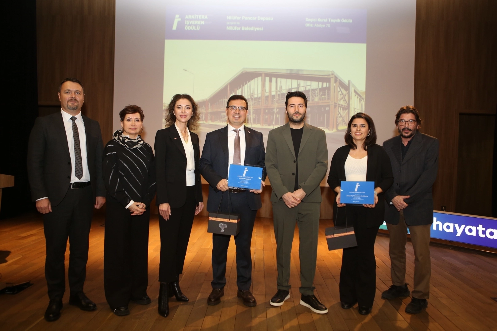 Arkitera Mimarlık Merkezi’nin, Arkitera Genç Mimar Ödülü ve Arkitera İşveren Ödülü, mimari alandaki nitelikli üretimi desteklemek ve yatırımcıları kaliteli projeler gerçekleştirmeye teşvik etmek amacıyla her yıl verdiği Arkitera Ödülleri, bu yıl Kastamonu Entegre Genel Merkezi’nde düzenlenen törende sahiplerini buldu. Kamu ve özel sektör olmak üzere iki kategoride ödüllerin verildiği törene Nilüfer Belediyesi adına, Nilüfer Belediye Başkan Yardımcıları Okan Şahin ve Şirin Biçer ile Nilüfer Belediyesi Kentsel Tasarım Müdürü Mustafa Yılmaz, Nilüfer Belediyesi Kültür ve Sosyal İşler Müdürü Nejla Aslan katıldı. Projeyi hayata geçiren Atelye70 ekibinden Doğu Kaptan ve Fatma Gençdoğuş da törende yer aldı.