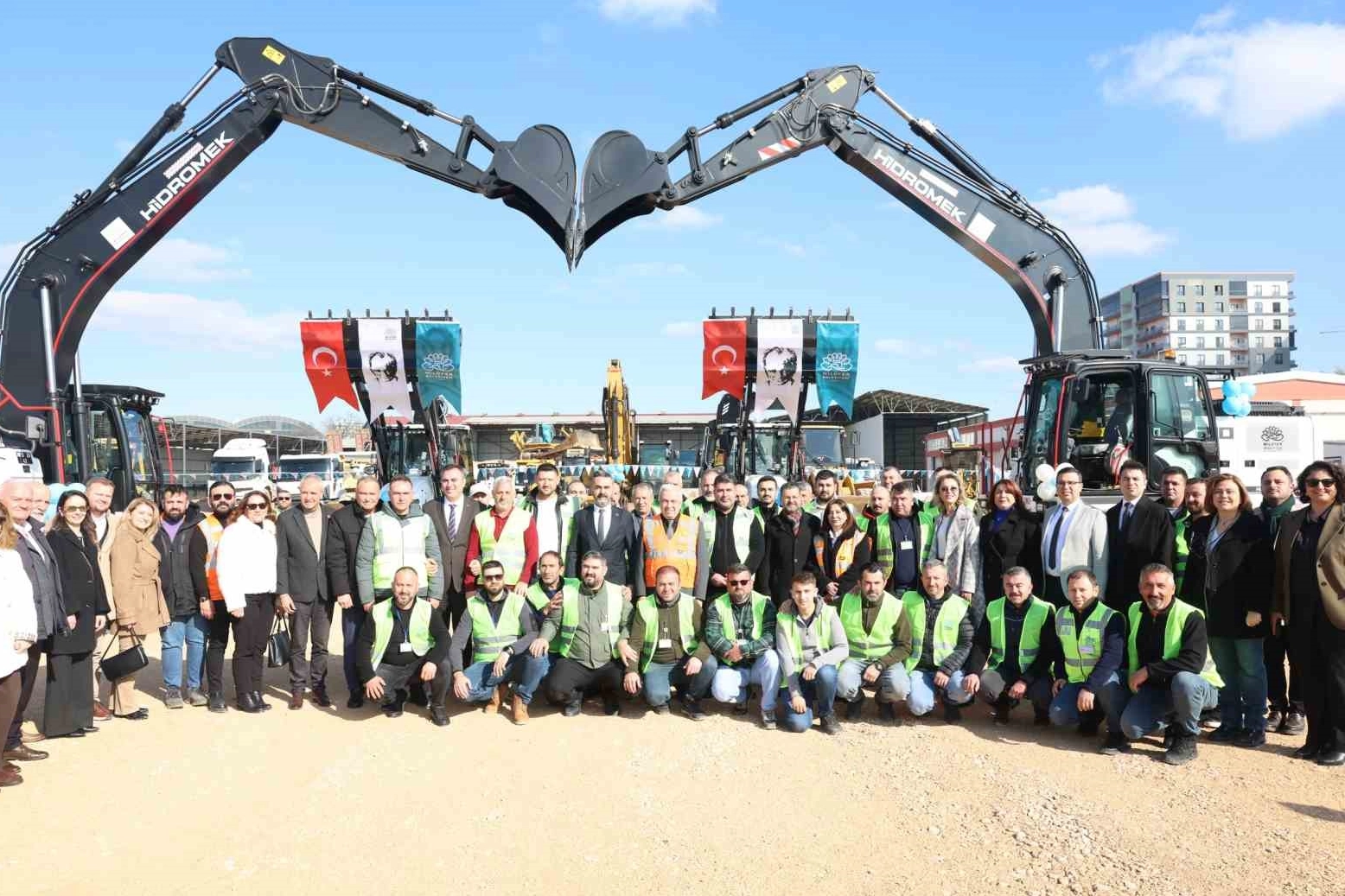 Altyapı ve ulaşım hizmetlerini hızlandırmayı hedefleyen Nilüfer Belediyesi, 4 iş makinesi ve 6 kamyonu düzenlenen törenle araç filosuna kattı.