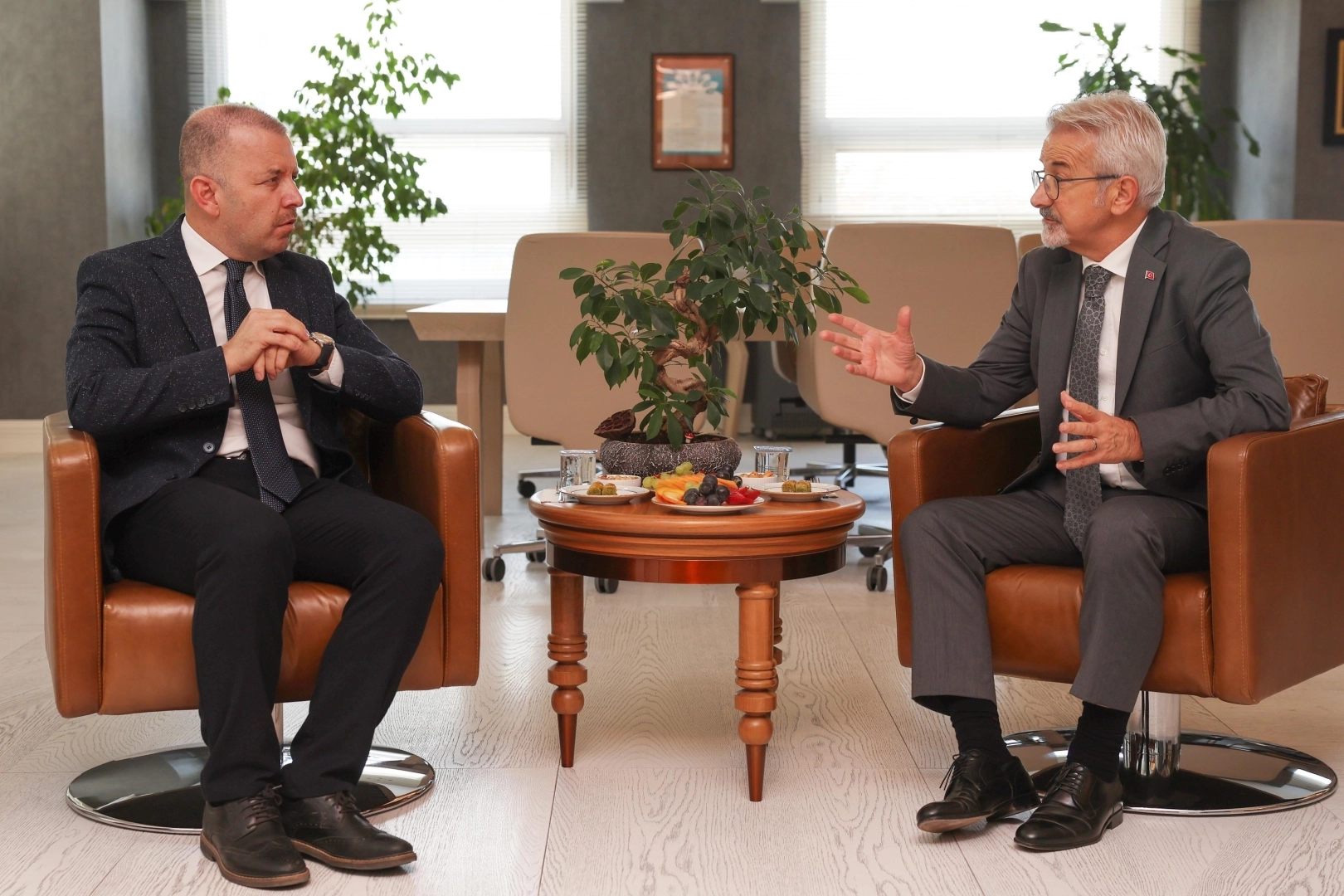 Cumhurbaşkanlığı kararnamesi ile Nilüfer İlçe Kaymakamı olarak atanan Murat Süzen, Nilüfer Belediye Başkanı Turgay Erdem’e iade-i ziyarette bulundu. Nilüfer Belediye Başkan Yardımcıları Dr. Sibel Özer, Osman Ayradilli, Engin Yener, Osman Uçar ve Adem Vural’ın da bulunduğu ziyarette, Nilüfer yer yönüyle ele alındı. Nilüfer’deki devlet okulu ihtiyacına değinen Nilüfer Belediye Başkanı Turgay Erdem, okul yapmak isteyen hayırseverlerin olduğunu, 23 Nisan Mahallesi’ndeki okul alanında sorunun aşıldığını ve çok yakın zaman içinde okul inşaatının temelini atacaklarını vurguladı. Başkan Erdem, diğer hazine arazilerindeki okul alanlarında ise çıkan pürüzler sebebiyle çalışmalarda yol alamadıklarını da Kaymakam Süzen’e iletti.