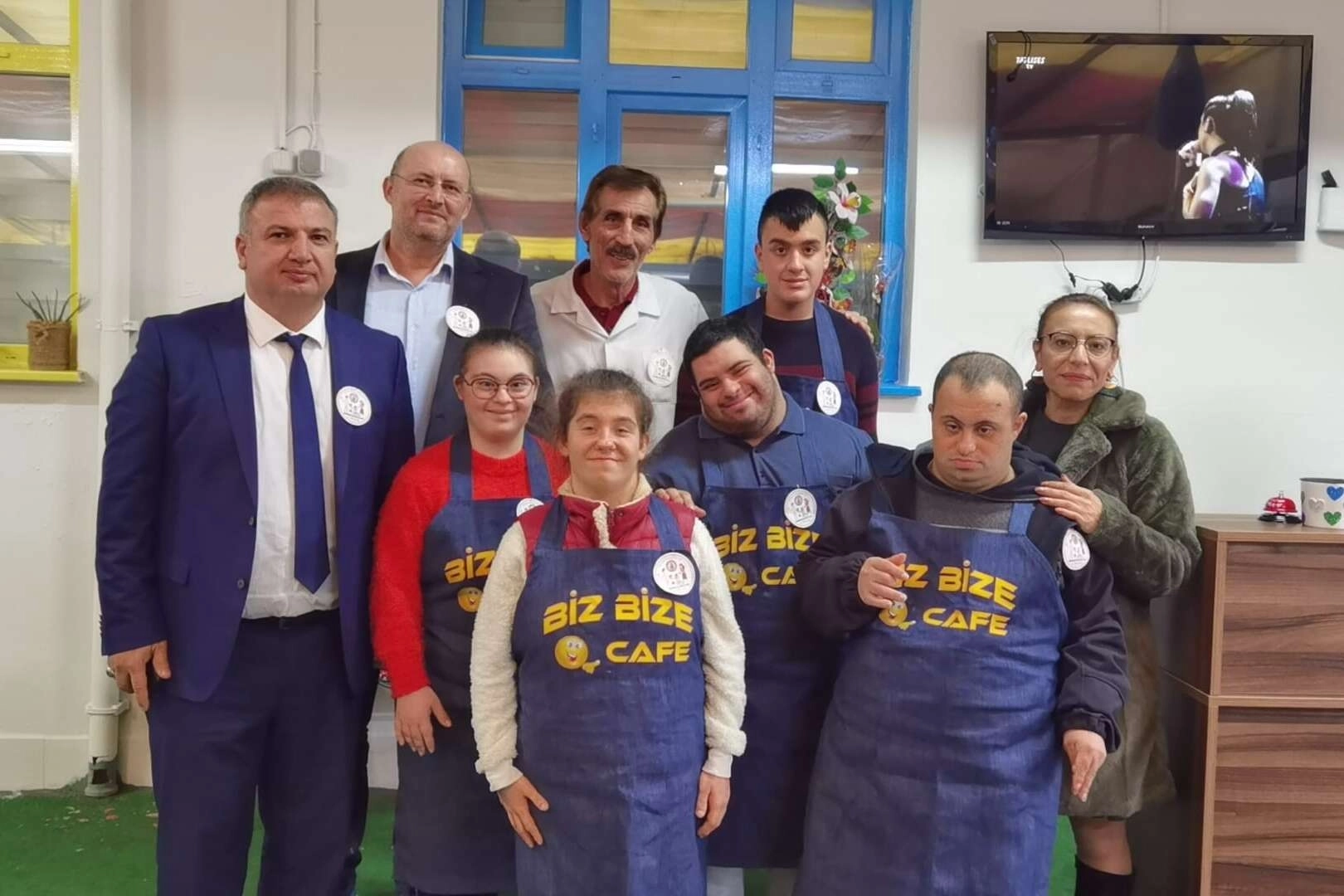 Kafeyi sahiplenen özel çocuklar, gelen müşterilerle ilgilenip, ikramlarda bulunuyorlar.