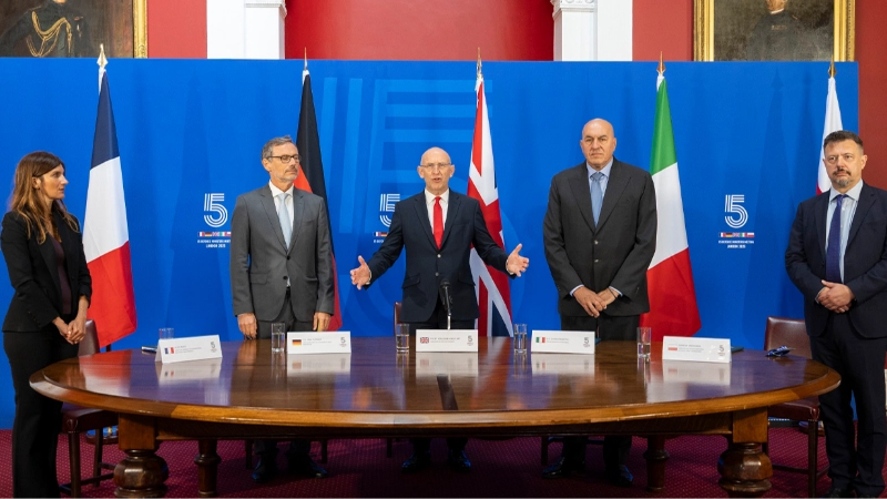 E5 grubu ülkeleri (İngiltere, Fransa, Almanya, İtalya ve Polonya) ile Ukrayna'dan savunma bakanları ve savunma alanında üst düzey yetkililer, Ukrayna ve Avrupa'nın güvenliğine ilişkin konuları görüşmek üzere İngiltere'nin başkenti Londra'da bir araya geldi.