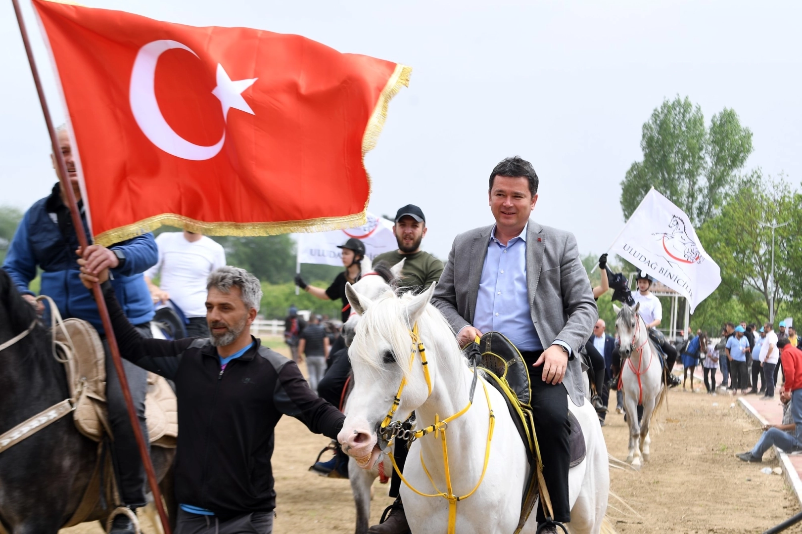 Osmangazi Belediye Başkanı Erkan Aydın, yarış alanına ata binerek giriş yaptı. Mahalle meydanında aracından inen ve yarış alanına kadar tüm yolu at sırtında ilerleyen Başkan Aydın’a rahvan atçıları da at binerek eşlik etti. At sırtında tüm yarış parkurunu turlayarak izleyicileri selamlayan Başkan Aydın’ı vatandaşlar alkış yağmuruna tuttu.