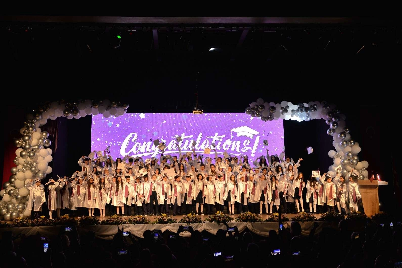 Başarılarla dolu bir seneyi daha geride bırakan 8. Sınıf öğrencileri için Academy kampüste düzenlenen ve adeta yıldızlar geçidi yaşatan görkemli tören, geleneksel mezuniyet yürüyüşü ile başlayarak, saygı duruşu ve İstiklal Marşı ile devam etti. Sanat ve Etkinlik Koordinatörü Tuba Palancı’nın sunduğu törende okul birincisi Berkay Alagöz, okul ikincisi Öykü Aktürk, okul üçüncüleri İlke Atilla, Ece Özen ve onur öğrencisi Beren Başaran konuşma yaparak mutluluklarını paylaştı. Özel Şahinkaya Eğitim Kurumları kurucuları Rasim Şahinkaya ve Nebahat Şahinkaya da bu özel ve anlamlı günde Şahinkayalı evlatlarını yalnız bırakmadı. Mezuniyet töreninde 8. Sınıf velileri adına ise Ceren Sarı anlamlı bir konuşma gerçekleştirdi. Diplomalarını heyecanla alarak eğitim hayatlarında bir üst seviyeye geçmenin mutluluğunu yaşayan öğrenciler törenin sonunda harika bir dans gösterisi gerçekleştirdi. Dans gösterisinin hemen ardından keplerini büyük bir coşkuyla havaya atarak mezuniyetin tadını doyasıya çıkardılar.