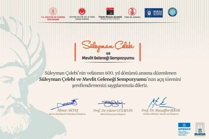 Bursa Ulu Cami’nin imamı olan ve burada yazdığı Vesiletü’n Necât (Mevlid-i Şerif) eseriyle tanınan Süleyman Çelebi, 600’üncü vefat yıl dönümünde 16-17-18 Eylül 2022 tarihleri arasında 'Süleyman Çelebi ve Mevlit Geleneği Sempozyumu' ile yad edilecek. Atatürk Kongre ve Kültür Merkezi Süleyman Çelebi Salonunda saat 14.30'da gerçekleştirilecek sempozyumda; Bursa Uludağ Üniversitesi Rektörü Prof. Dr. Saim Kılavuz, Türk Dil Kurumu Başkanı Prof. Dr. Gürer Gülsevin, Türkiye Bilimler Akademisi Başkanı Prof. Dr. Muzaffer Şeker, Atatürk Kültür, Dil ve Tarih Yüksek Kurumu Başkanı Prof. Dr. Muhammet Hekimoğlu, Bursa Büyükşehir Belediye Başkanı Alinur Aktaş, Bursa Valisi Yakup Canbolat ile Kültür ve Turizm Bakanı Mehmet Nuri Ersoy da konuklar arasında bulunuyor.