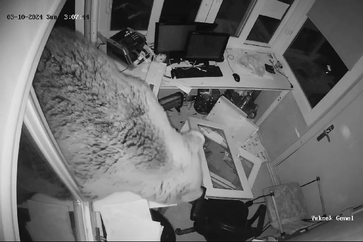 Uludağ’ın ormanlarında yiyecek bulamayan ayılar, insanların yaşadığı ortamlara inerek yiyecek aramaya devam ediyor. Güvenlik kameralarına yansıyan son görüntüler, Sarıalan Bölgesinde kayda alındı. 2 yavrusu ile birlikte yiyecek arayan ayı, önüne gelen ne varsa yıktı geçti. Yavrularını doyurmak için yiyecek bulmak zorunda olan yetişkin ayı, çöp konteynerlerinde bir şey bulamayınca, Macera Park'ın güvenlik kulübesine girmeye çalıştı. Gişenin camını zorlayarak indiren ayı, içeri giremeyince diğer camı da zorlayarak kırdı. İçeri girmeye başaran ayı, yavruları ve kendi için bir şey bulamadan çıktığı yerden indi. Boyları yetmeyen 2 yavru ayı da içeri bakmayı ihmal etmedi.