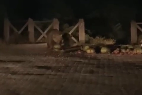 Kış turizminin gözde merkezlerinden Uludağ'ın yerleşim bölgesi Sarıalan'da sürekli vatandaşlara yakınlaşan ve tatilcilerin maskotu haline gelen anne ayı ve yavrularının ziyaretçileri bitmiyor. Onlardan biri olan ve esnaflık yapan Selman Kahraman, Uludağ Sarıalan'a çıkarak açık kasa kamyonetine yüklediği karpuzları meşhur ayı ailesine götürdü. Anne ayı ve yavrularına karpuz festivali düzenleyen esnaf, kasadan aldığı karpuzları bir bir attı. Bariyerlerin arkasından gelen ayı ve yavruları kendisine atılan karpuzları alarak ormanlık alana indi. O anlar Kahraman’ın kamerasıyla kaydedildi.