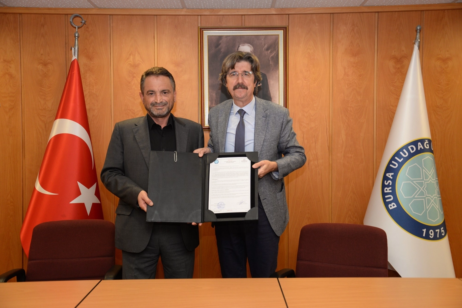 BUÜ Uygulamalı Mekanik ve İleri Malzemeler Araştırma Grubu ile Asgard Savunma Teknolojileri A.Ş. arasında hazırlanan mutabakatı Rektör Prof. Dr. Ferudun Yılmaz ile firma İcra Kurulu Başkanı Aşkın Çalışkan birlikte imzaladı. Gerçekleştirilen toplantıda konuşan Rektör Prof. Dr. Ferudun Yılmaz, dünya gündemine bakıldığında savunma sanayiinin öneminin çok daha iyi anlaşılabileceğini vurguladı. Savaşlar, bölgesel çekişmeler ve küresel dengeler nedeniyle Türkiye’nin her zaman için güçlü kalmak zorunda olduğunu söyleyen Prof. Dr. Ferudun Yılmaz, “Jeopolitik konum başta olmak üzere, atılan adımlar ve gelecek hedeflerini baz aldığımızda ülkemizin her daim kendini savunmak ve caydırıcı sebepler oluşturmak adına güçlü durması gerekiyor. Bu anlamda atılabilecek en ciddi adım yerli ve milli teknolojilerin geliştirilmesidir. Son 10 yılda önemli adımlar attık. Savunma sanayiinde söz sahibi ülkeler arasına adımızı yazdırdık. Fakat elbette eksik kalınan noktalarımız var. Özellikle yazılım ve katma değeri yüksek alanlarda kendimizi geliştirmeye devam etmeliyiz. Bugün imzalayacağımız protokol de savunma sanayii özelinde hem firmaya hem de bizlere kıymetli kazanımlar sağlayacak. Hepimize hayırlı olmasını diliyorum” dedi. Asgard Savunma Teknolojileri A.Ş. İcra Kurulu Başkanı Aşkın Çalışkan’da sektörün dünyada ve Türkiye’de her geçen gün gelişmeye devam ettiğinin altını çizdi. Savunma sanayii alanında çalışan firmaların da kendilerini geliştirmeye ve teknolojik dönüşümleri doğru okumaya ihtiyaç duyduklarını belirten Aşkın Çalışkan,“Burada doğru Ar-Ge ve bilimsel temelli çalışmanın önemi ortaya çıkıyor. Böyle olunca da üniversitelerin değeri çok daha iyi anlaşılıyor. Firma olarak global ölçekte çalışmalar yürütüyoruz. Bursa Uludağ Üniversitesi ve burada görev yapan hocalarımız projelerimize kıymetli katkılar sunacaktır. Birlikte katma değeri yüksek çalışmalar üreteceğimize inanıyoruz. İşbirliğimizin hayırlı olmasını diliyoruz” şeklinde konuştu. Mutabakat metni imza töreninde Mühendislik Fakültesi Öğretim Üyesi Prof. Dr. Murat Yazıcı ile BUÜ Teknoloji Transfer Ofisi Genel Müdür Yardımcısı Öğretim Gör. Nihal Sağlam ve firma temsilcileri de hazır bulundu.
