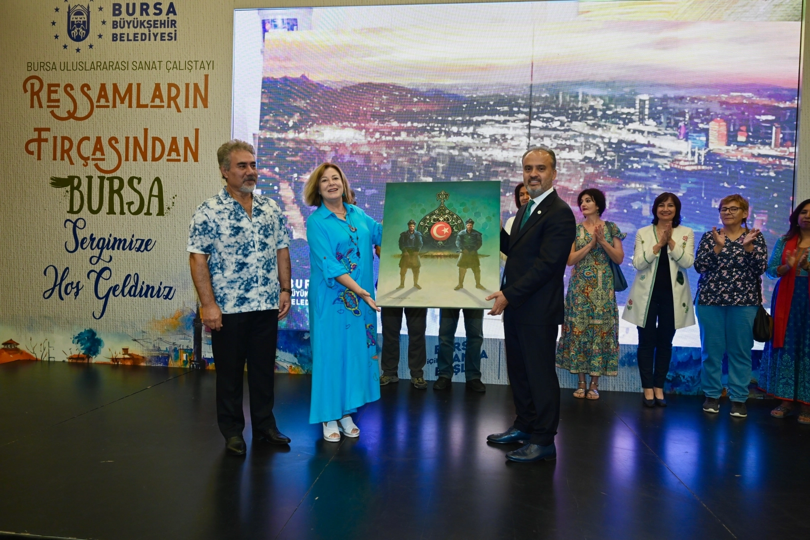 Atatürk Kongre ve Kültür Merkezi Hüdavendigar Salonu’nun fuaye alanındaki serginin açılış törenine katılan Bursa Büyükşehir Belediyesi Başkanı Alinur Aktaş, Bursa’ya önemli bir değer olarak kalacak eserlere imza atan tüm ressamlara teşekkür etti. Her şehrin bir hikayesi olduğunu, Bursa’nın hikayesinin ise belki de en orijinal hikayelerden biri olduğunu kaydeden Başkan Aktaş, “Bursa beş farklı medeniyete ev sahipliği yapmış, özellikle erken dönem Osmanlı'nın eserlerini bağrında barındıran ve çok önemli izlerini hala taşıyan bir şehir. Burada açıkçası ressamlarımızın eserlerine baktığımızda da bunu çok net görmek mümkün. Ben her bir sanatçımıza teşekkür ediyorum. Bu çalışmalar ne benim şahsıma ve ne de bir başka kişiye ait çalışmalar. Bunlar Bursa'nın çalışmaları, Bursa'ya değer olarak kalacak çalışmalar. Dolayısıyla şehir dışından, yurt dışından gelen misafirlerimiz var. Her birine ayrı ayrı teşekkür ediyorum. Yüreklerine sağlık” dedi.