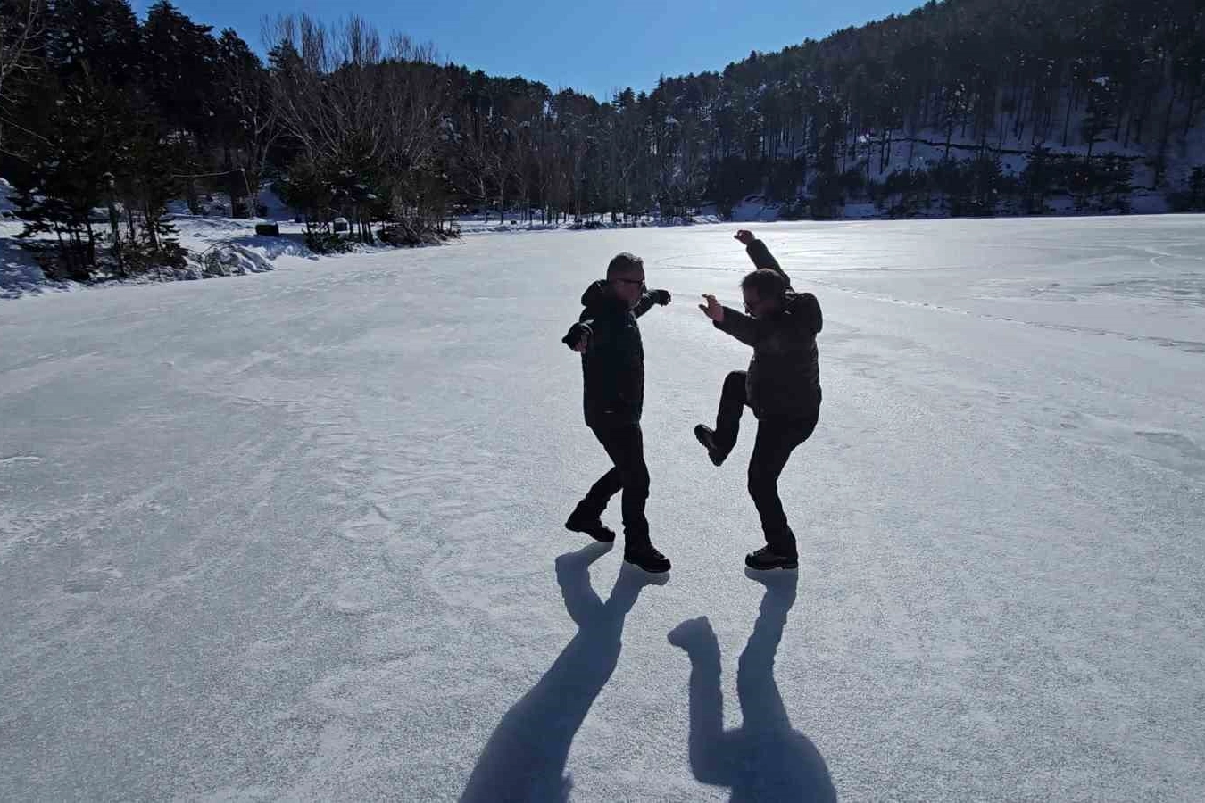 Bursa’nın doğa sporlarıyla özdeşleşen isimlerinden İsmet Şentürk, tam 6 yıldır kış aylarında Uludağ’ın buz tutan göllerine girerek herkesi şaşırtan bir geleneği sürdürüyor. Şentürk, bu yılda önce çökertme oynadığı gölün üzerini kaplayan kalın buz tabakasını kesip açtığı alandan buz gibi suya girdi.