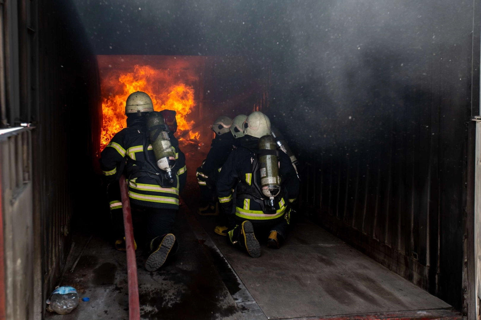 Sorunsuz tamamlanan eğitim tatbikatlarının ardından itfaiye ekiplerinin kontrolünde yangın söndürme ve yangın sonrası dumana maruz kalan bir yaralının ortamdan tahliyesi tatbikatları da yapıldı.