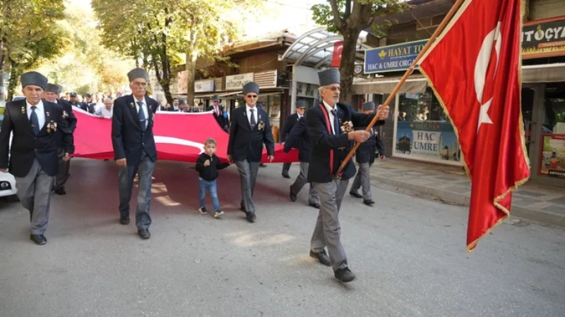 Heykel Meydanı’nda başlayan resmi program, saygı duruşu ve İstiklal Marşı’nın ardından Yenişehir Belediyesi Osmanlı Mehteri eşliğinde gerçekleştirilen kortej yürüyüşüyle devam etti.