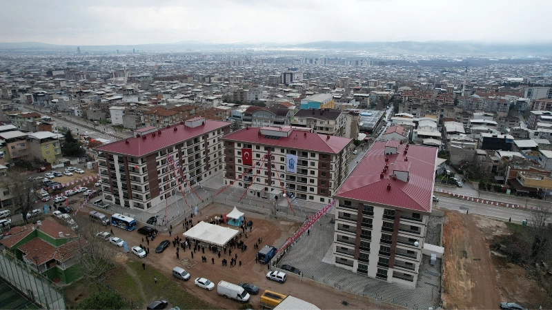 Anahtarlar sahiplerini bulduMimarsinan Mahallesi’nde bölgeye örnek olacak projenin 1 yıl gibi kısa bir sürede tamamlandığını söyleyen Yıldırım Belediye Başkanı Oktay Yılmaz, "Bugün Yıldırım’ın geleceğine hizmet eden vatandaşlarımızı sağlıklı, huzurlu, modern bir yaşam sunan önemli bir projeyi daha bitirmenin mutluluğunu yaşıyoruz. Yaklaşık 1 yıl önce Çevre Şehircilik ve İklim Değişikliği Bakanlığı tarafından rezerv alan ilan edilen 6 bin metrekarelik bu adada kentsel dönüşüm temel atma töreni gerçekleştirmiştik. 1 yıl sonra da eserimiz ortada. Bu sürece destek veren hak sahiplerini kutluyorum. Bu adada 130 konut yer alıyor, 2 bin 118 metrekare işyeri, 600 metrekare de park alanı kazandırmış oluyoruz" dedi.