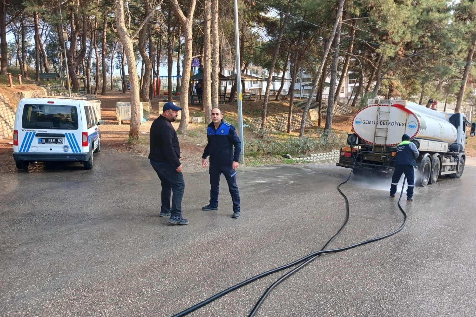 Öte yandan trafikte tehlike durumu olmaması için Park ve Bahçeler Müdürlüğü’ne ait yıkama tankeriyle yol üzerindeki beton temizlendi.