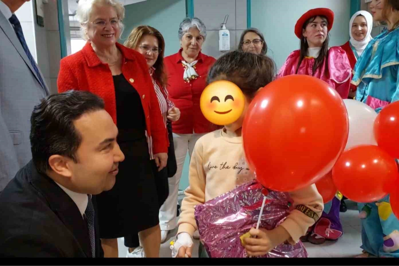 Önce, Bursa Yüksek İhtisas Eğitim ve Araştırma Hastanesi’ne giden koro üyeleri,23 Nisan için bayrak ve balonlarla donatılmış, palyaçolarında yer aldığı çocuk kliniğinde her yaşta yatan çocukları Başhekim Doç. Dr. Mehmet Oğuzhan Ay, Başhekim Yardımcısı Uzm. Dr. Muhammed Arap ve Sağlık Bakım Hizmetleri Müdürü Medine Seymen Aybey ile birlikte tek tek ziyaret ederek yaşlarına uygun oyuncak, giyim ve zeka oyunları armağan etti. 23 Nisan Ulusal Egemenlik ve Çocuk Bayramlarını kutladı.