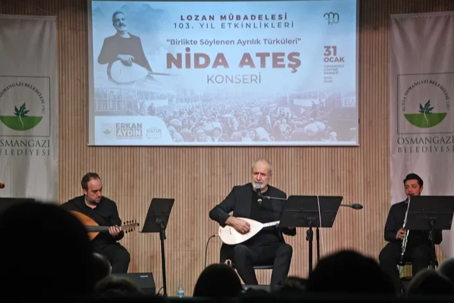 Bursa'da Osmangazi Belediyesi, Lozan Mübadelesi’nin 103’üncü yılı dolayısıyla anlamlı bir konsere ev sahipliği yaptı. “Birlikte Söylenen Ayrılık Türküleri” başlığıyla sahne alan Nida Ateş, ayrılığın ve hasretin ortak hafızadaki izlerini türküler aracılığıyla dinleyicilere aktardı.