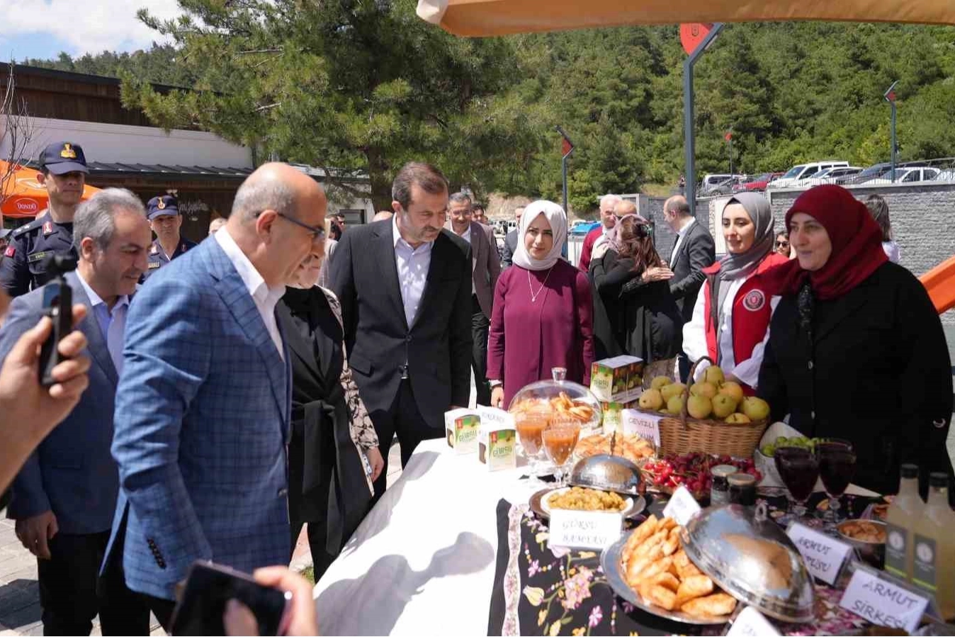 Bursa Valisi Mahmut Demirtaş’ın katılımı ile düzenlenen organizasyonda konuklara armut marmelatlı kurabiye, armut kurusu, armutlu kek, armut pekmezi, armut sirkesi, şeftali suyu, cevizli lokum, tahanlı pide, cağ kebabı, bamya, samsa böreği ve hinkal mantısı ikram edildi.