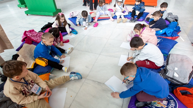 Bursa Büyükşehir Belediyesi Kültür ve Sosyal İşler Dairesi Başkanlığına bağlı Kültür Şube Müdürlüğü tarafından Merinos Atatürk Kongre Kültür Merkezi’nde hazırlanan ‘Resimlerden Resim Beğen-Bir Koleksiyonerin Seçkisi’ isimli sergi, Büyükşehir Belediyesi personel kreşinde eğitim gören minikler tarafından ziyaret edildi. Sergide yer alan resimlerin anlatıldığı etkileşimli gezinin ardından minikler ‘Hayal et resmet’ atölyesine katıldı.