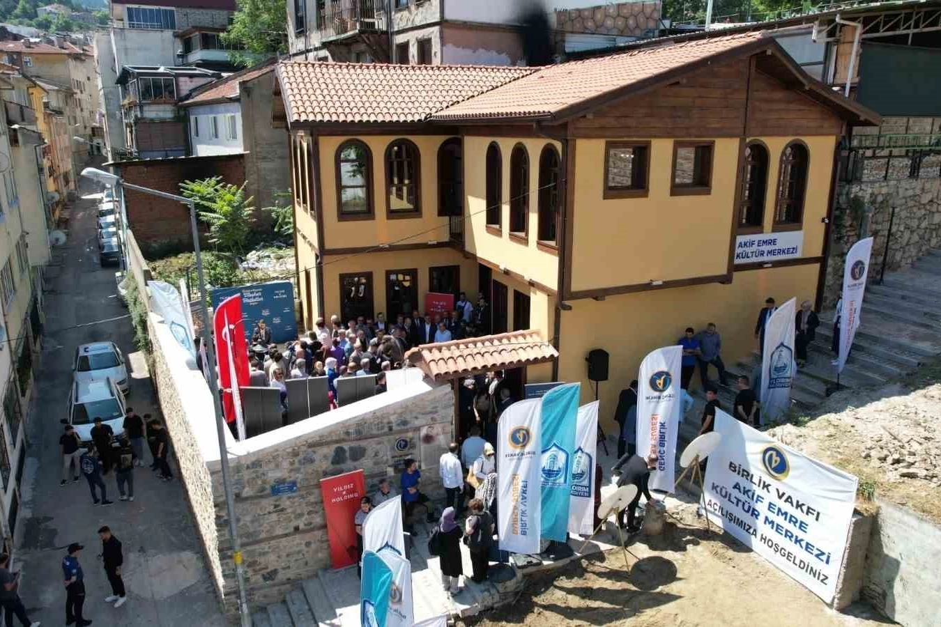 Yıldırım’da Birlik Vakfı Akif Emre Kültür Merkezi hizmete açıldı. Törene, Yıldırım Belediye Başkanı Oktay Yılmaz, Bursa Cumhuriyet Başsavcısı Ramazan Solmaz, Bursa Uludağ Üniversitesi Rektörü Prof. Dr. Ferudun Yılmaz, pladis Yönetim Kurulu Başkanı Murat Ülker, İl Emniyet Müdürü Dr. Sabit Akın Zaimoğlu, İl Sağlık Müdürü Dr. Orkun Yıldırım, İl Göç İdaresi Müdürü Recep Batu, İl Milli Eğitim Müdürü Ahmet Alireisoğlu, AK Parti İl Başkanı Davut Gürkan, Bursa Kültür Varlıklarını Koruma Bölge Kurulu Müdürü Erdal Çetindağ, Vakıflar Bölge Müdürü Dr. Haluk Yıldız, Eski Adalet Bakan Yardımcısı Zekeriya Birkan, Eski AK Parti Bursa Milletvekili İsmail Aydın, Birlik Vakfı Kurucular Kurulu Başkanı Yaşar Karayel, Birlik Vakfı Bursa Şubesi Başkanı Mustafa Bayraktar ile diğer davetliler katıldı.
