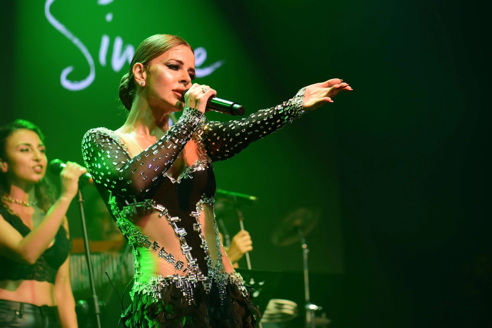 Sahne kıyafeti ve danslarıyla adeta göz dolduran Simge, sevilen şarkılarını Bursalı sevenleri için seslendirdi.