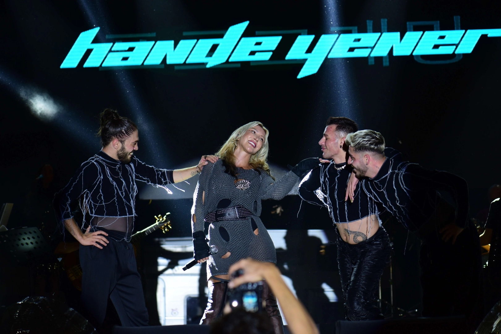Ünlü popçu Hande Yener, Bursa’da sahne aldı. Yaz sezon başından bu yana yoğun konser programlarıyla en çok konser veren sanatçılar arasında olan Yener, enerjisiyle büyüledi. Sahne performansı ve danslarıyla keyifli anlar yaşatan Yener, sahne kıyafetiyle göz kamaştırdı.