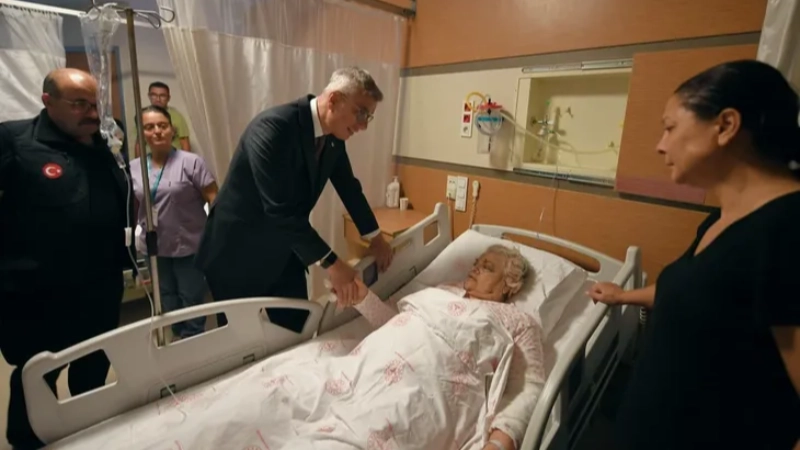 Ziyaretlerde yaralıların sağlık durumları hakkında bilgi alan Bakan Memişoğlu, tedavi süreçlerinin titizlikle takip edildiğini vurguladı ve afetzedelere moral desteği sağladı.