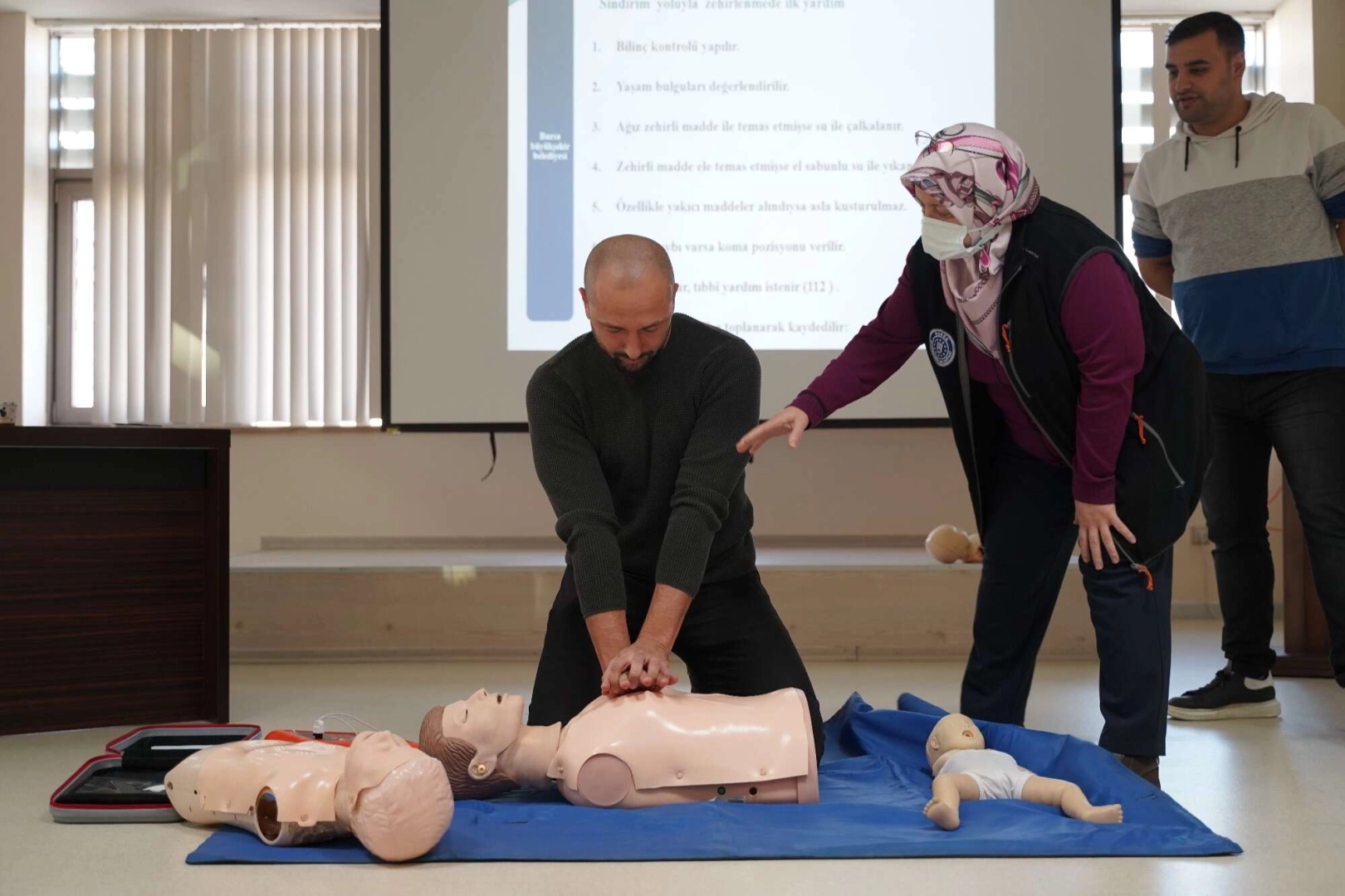 İster bireysel, ister kurumsal herkes ilk yardım eğitimlerini Bursa Büyükşehir Belediyesi’nden alabilecek. Doğumdan ölüme kadar hayatın her alanında sosyal projeleriyle vatandaşların yanında olan Bursa Büyükşehir Belediyesi, özellikle hayati önem taşıyan ilk yardım konusunda da örnek bir projeye imza atıyor. Kurum bünyesinde görevli personele eğitim vermek amacıyla 2017 yılında kurulan İlk Yardım Eğitim Merkezi, kapılarını artık tüm vatandaşlara açıyor. Alanında uzman 6 İlk Yardım Eğitmeni ile bugüne kadar 3 bine yakın belediye personeline Temel İlk Yardım Eğitimi, Güncelleme Eğitimi ve Bilgilendirme Eğitimlerinin verildiği merkez, artık eğitim talebinde bulunan bütün vatandaşlara eğitim verecek. İl Sağlık Müdürlüğü’nün belirlediği fiyat tarifesiyle verilecek eğitimlerden bireysel olarak vatandaşlar ve talep eden kuruluşlar da yararlanabilecek. Büyükşehir Belediyesi Yeni Hizmet Binası içindeki İlk Yardım Eğitim Merkezi’nde verilecek eğitimler, toplam 16 saat sürecek.