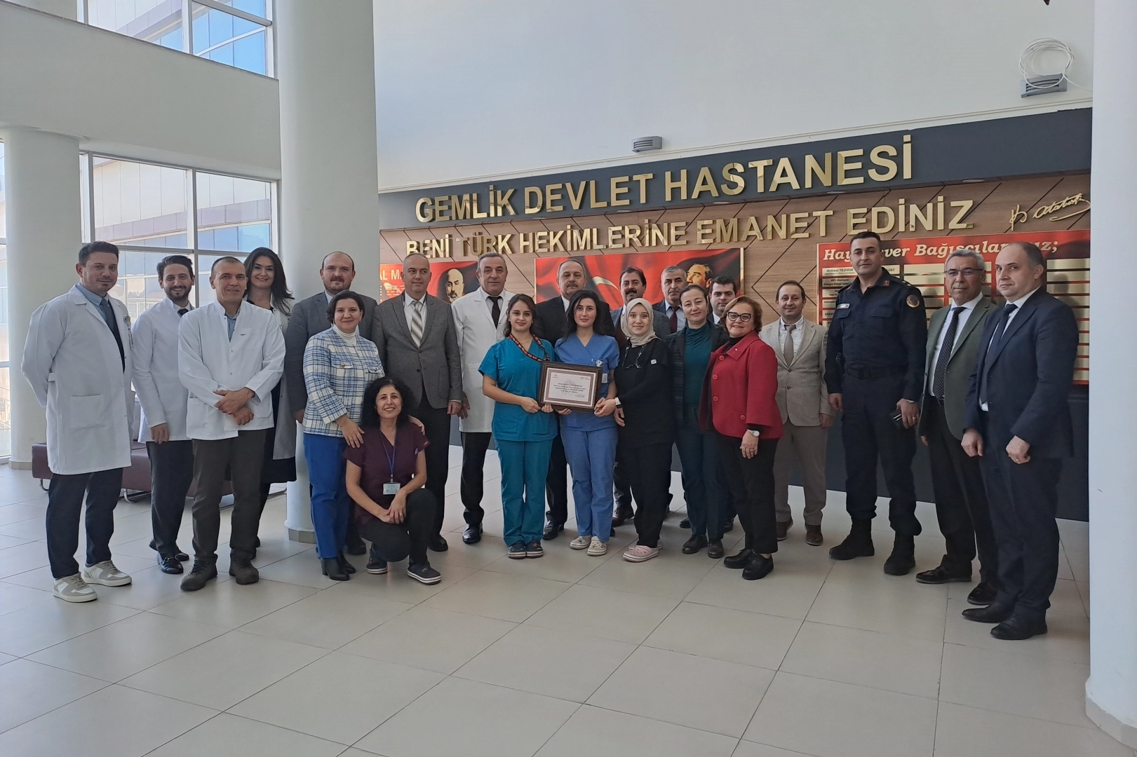 Konuşmaların ardından Gemlik Kaymakamı Hasan Göç’ün Gemlik Devlet Hastanesi Başhekimi Uzm. Dr. Şahmeran Çelenkoğlu’na ‘Anne Dostu Hastane’ unvanını takdim etti.