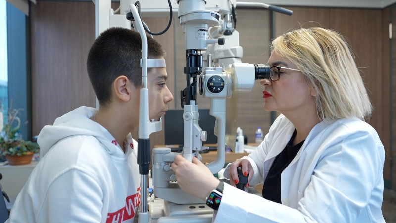 Uzun ve zorlu bir süreçAmeliyathane ortamında, göz yüzeyindeki işlevini kaybetmiş dokuyu temizlediklerini belirten Doç. Dr. Karaman, “Ameliyat sonrasında amniyon membran transplantasyonu uyguluyoruz. Ancak bazı durumlarda bu da yeterli olmuyor ve tekrarlayan kapak altı enjeksiyonlarla tedaviye devam etmek zorunda kalıyoruz. Süreç hem çocuk hem de ailesi için oldukça zorlu ve uzun olabiliyor. Buna rağmen, doğru tedavi yöntemleriyle genellikle başarılı sonuçlar alıyoruz. Kerem de olduğu gibi, sabırlı bir şekilde takip edilen tedavi, çocukların hayatını değiştirebiliyor” diye konuştu.“Gözlerini açamıyordu”Kerem’in sağlık durumunun her geçen gün daha da iyiye gittiğini vurgulayan Doç. Dr. Karaman, “Kerem ilk geldiğinde gözlerini dahi açamıyordu. Evde ışıkların yanmasını istemeyen, dışarı çıkmaktan çekinen bir çocuktu. Okula gidemiyor, arkadaşlarından uzak kalıyordu. Ancak tedavi sonrası Kerem bambaşka biri oldu. Şu an aktif olarak spor yapabiliyor, okula gidiyor ve günlük hayatını sorunsuz bir şekilde sürdürebiliyor. Gözlükle de olsa tam bir görme kapasitesine sahip. Onun hayatına dokunmuş olmak, hem bizim için hem de ailesi için büyük bir mutluluk kaynağı” şeklinde konuştu.“Görmeye başladım”İki yıllık tedavi sürecinin ardından sağlığına kavuştuğunu dile getiren 13 yaşındaki Kerem Kurşun, “6 yaşımdan itibaren gözlerim şişiyor, kızarıyor, batıyor. Birçok sağlık kuruluşuna gittim, birçok doktor gördüm ama hiçbirinden sonuç alamadım. Sonra Sevil hocama geldim. Sevil hocam bana çok iyi davrandı ve tedavi sürecimiz çok verimli geçti. Şu anki sağlık durumum gerçekten çok güzel. Her şeyi çok iyi görmeye başladım. Şu an damla kullanıyorum ama tedaviden önceki gibi şiddetli bir sorun yaşamıyorum. Eskiden güneş gözlüksüz dışarı çıkamıyordum, ama şimdi tedavi sonrası ışıkları daha rahat görebiliyorum. Eskiden ışıklar beni çok rahatsız ederdi. Salondaki ışıkları bile açmazdık, ama şimdi açabiliyoruz” şeklinde konuştu.