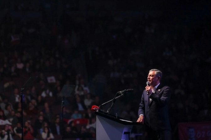 Programda bir konuşma yapan CHP Genel Başkanı Özel, "Bir yılda 100 eylemde buluştuk. Partinin her bir otobüsü 100 bin kilometre yol yaptı. 100 eyleme katılanların sayısı 16 milyona dayandı. Bugün de mücadelemizin 374’üncü gününde bir dost meclisindeyiz. Dilimizde özgürlüğe, aydınlık yarınlara dair şiirler var, şarkılar var. Milli iradeye, yani millete savaş açanlar onlar, kul hakkına girenler onlar, tarihe darbeci olarak geçecek olanlar onlar. Bu millet çok kara kışlar gördü, çok dar yollardan geçti. Her darbede sanatçılar, gazeteciler, aydınlar hedef oldu. Gün oldu tutuklandılar, gün oldu işkencelerden geçtiler ama dik durmaktan, kalemi ve sözü savunmaktan vazgeçmediler. Bugün hapiste olan Merdan Yanardağ’ı, Alican Uludağ’ı, İsmail Arı’yı hasretle ve özlemle kucaklıyorum. Nice siyasetçi, aydın, akademisyen, sivil toplum temsilcisi gibi bugün de kalemini satmayan gerçek gazetecilere, sözünü sakınmayan cesur sanatçılara, akademisyenlere, sivil toplum temsilcilerine teşekkür ediyorum. Önümüzde bakır taslar güneş dolu. Dostların arasındayız, güneşin sofrasındayız. Bütün sanatçılarımızı, Dilek Hanım’ı, İl Başkanımızı, Büyükşehir Belediye Başkanımızı, ilçe belediye başkanlarımızı, biraz önce çıkan tüm ilçe başkanlarımızı bu kez kadın ve gençlik kollarıyla birlikte buraya çağırıyorum. Dostların arasındayız, umudun sofrasındayız" şeklinde konuştu.