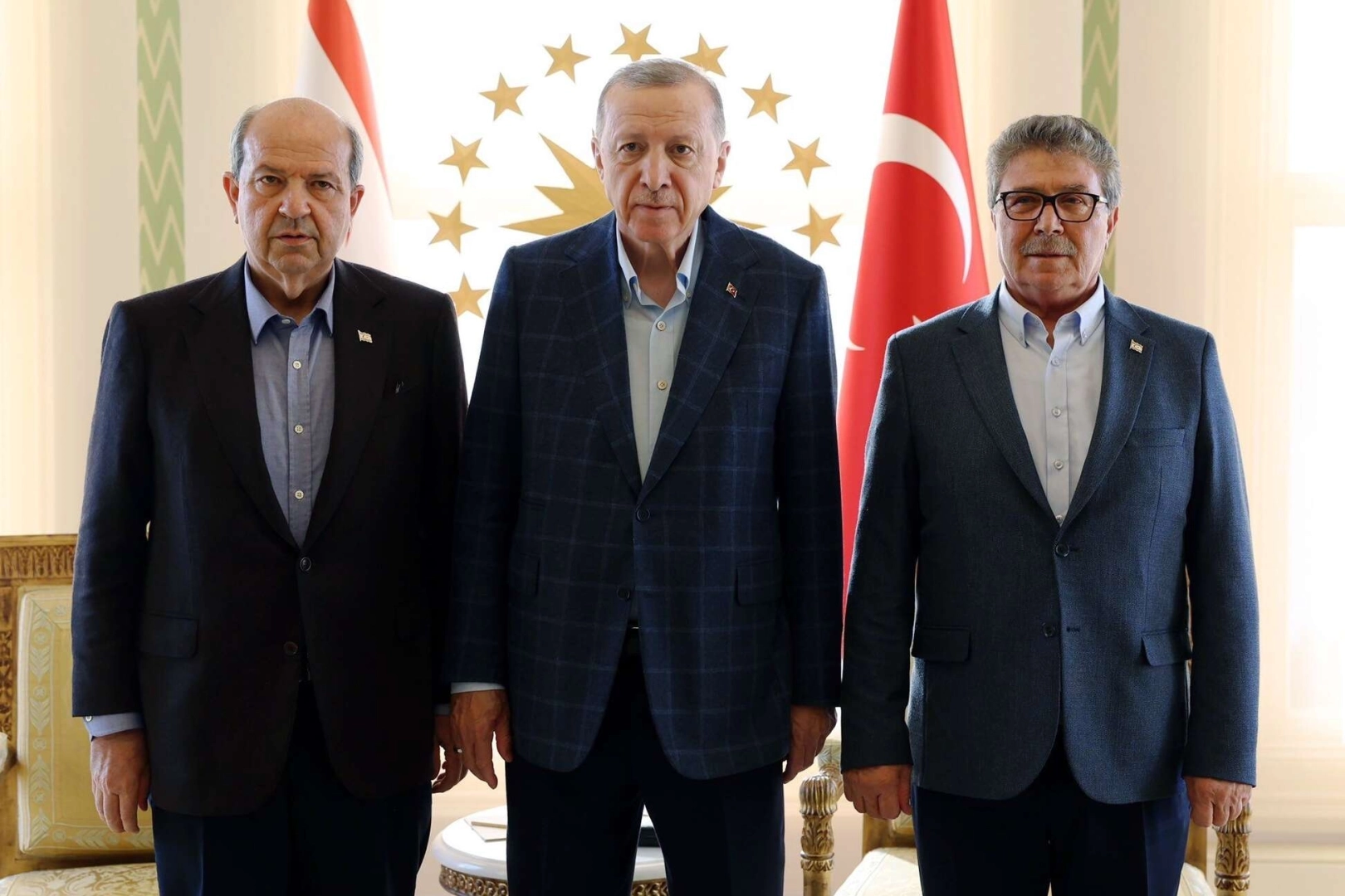 Cumhurbaşkanı Recep Tayyip Erdoğan, KKTC Cumhurbaşkanı Ersin Tatar ve KKTC Başbakanı Ünal Üstel ile Vahdettin Köşkü’nde bir araya geldi. Liderler arasındaki görüşme, basına kapalı olarak gerçekleşiyor.
