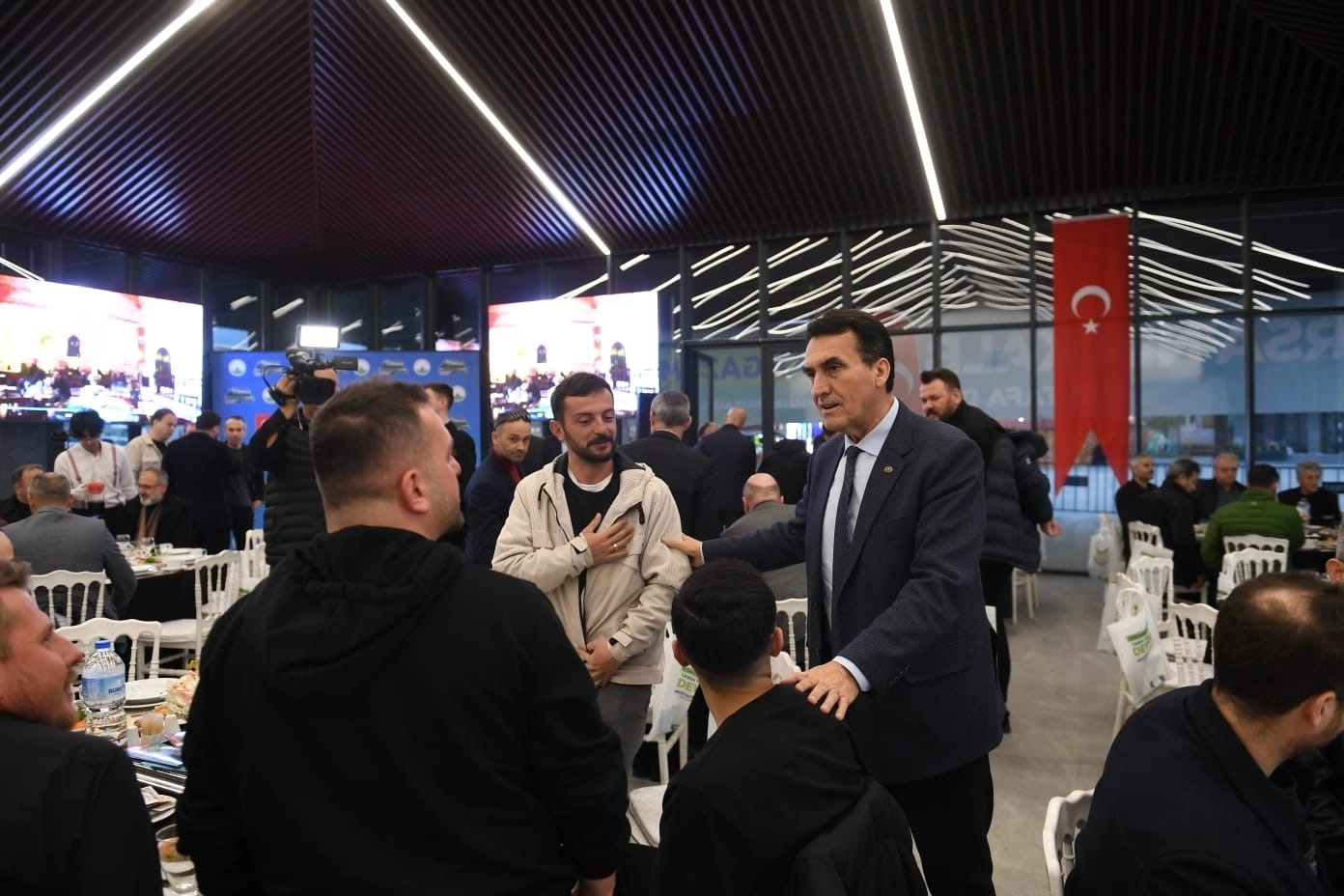 Osmangazi Belediye Başkanı Mustafa Dündar, Osmangazi Meydanı’nda düzenlediği iftar programları ile her akşam toplumun farklı kesiminden vatandaşlar ile aynı sofrada buluşuyor. Başkan Dündar, son olarak ilçede yer alan amatör spor kulüplerinin temsilcileri için iftar yemeği verdi. Bursa’da son dönemde inşa edilen en önemli eser olan Osmangazi Meydanı’nda amatör spor kulüplerinin temsilcilerini ağırlayan Başkan Dündar, iftar saati öncesinde masaları tek tek dolaşarak konuklarının her biriyle ayrı ayrı tokalaştı. Ramazan ayının birleştiriciliğinin en güzel şekilde gözler önüne serildiği iftar yemeğine amatör spor kulüpleri temsilcilerinin yanı sıra AK Parti Osmangazi İlçe Başkanı Adnan Kurtuluş ve MHP Osmangazi İlçe Başkanı Kerim Gürsel Çelebi de katıldı. Akşam ezanının okunmasıyla hep birlikte dualar edilerek oruçlar açıldı.