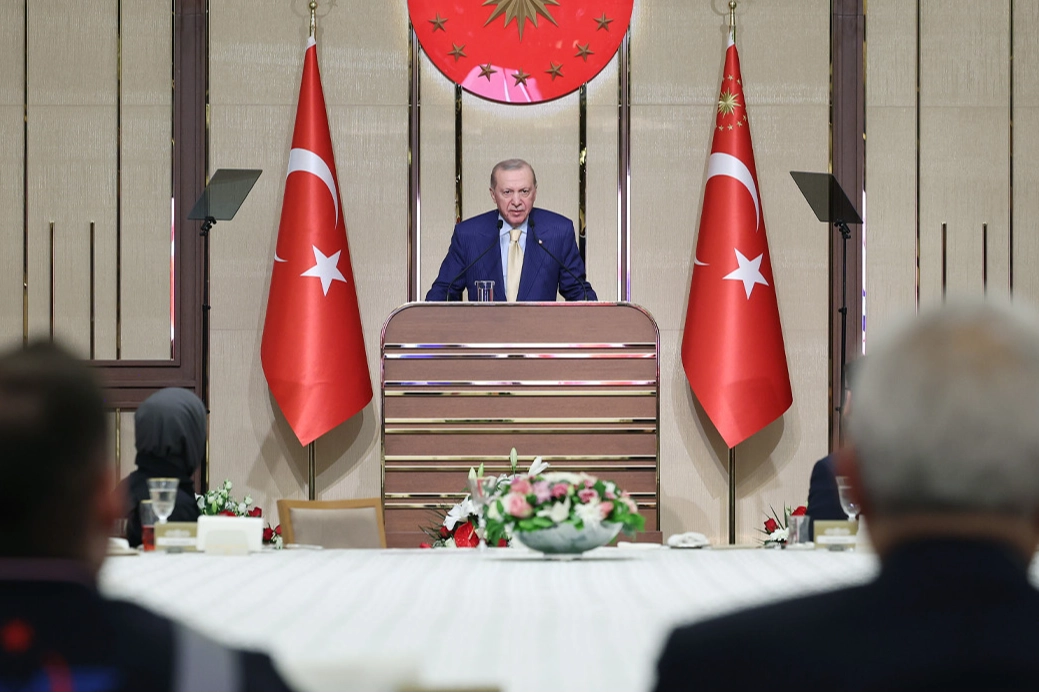 Konuşmasının başında Gazze ve Sudan’da Müslümanların zor şartlarda oruç tutup, iftar yaptığını hatırlatan Erdoğan, "Müslümanlar olarak bir taraftan 11 ayın sultanı Ramazan-ı Şerif’e erişmenin coşkusunu yaşıyor, diğer taraftan da Gazze’de Sudan’da ve daha birçok yerde sıkıntı çeken, eziyet gören bir kuru ekmek, bir tas çorba ile iftar yapmak zorunda kalan kardeşlerimizin sızısını yüreğimizde hissediyoruz. 10 Ekim’de bizim de çabalarımızla sağlanan ateşkese rağmen hukuk tanımaz İsrail hükümeti Gazze ve Batı Şeria’ya yönelik saldırılarını artırarak sürdürüyor. İsrail’in saldırıları sonucu 11 Ekim’den bu yana 615 Filistinli şehit oldu. 2 bine yakın Filistinli kardeşimiz yaralandı. İnsani yardım malzemelerinin girişinde halen ciddi güçlükler çekiliyor. Gazze’nin nefes borusu olan refah sınır kapısında kısıtlamalar, zulümler, İsrail’in keyfi davranışları maalesef devam ediyor. Yıkıntılar arasında kurşun ve şarapnel izleriyle dolu derme çatma binalarda iftar yapan, son derece çetin şartlar altında oruç tutan ama bunlara rağmen zalime boyun eğmeyen Gazze’li kardeşlerimiz bir kez daha imanlarıyla tüm Müslümanlara örnek oluyor" diye konuştu.